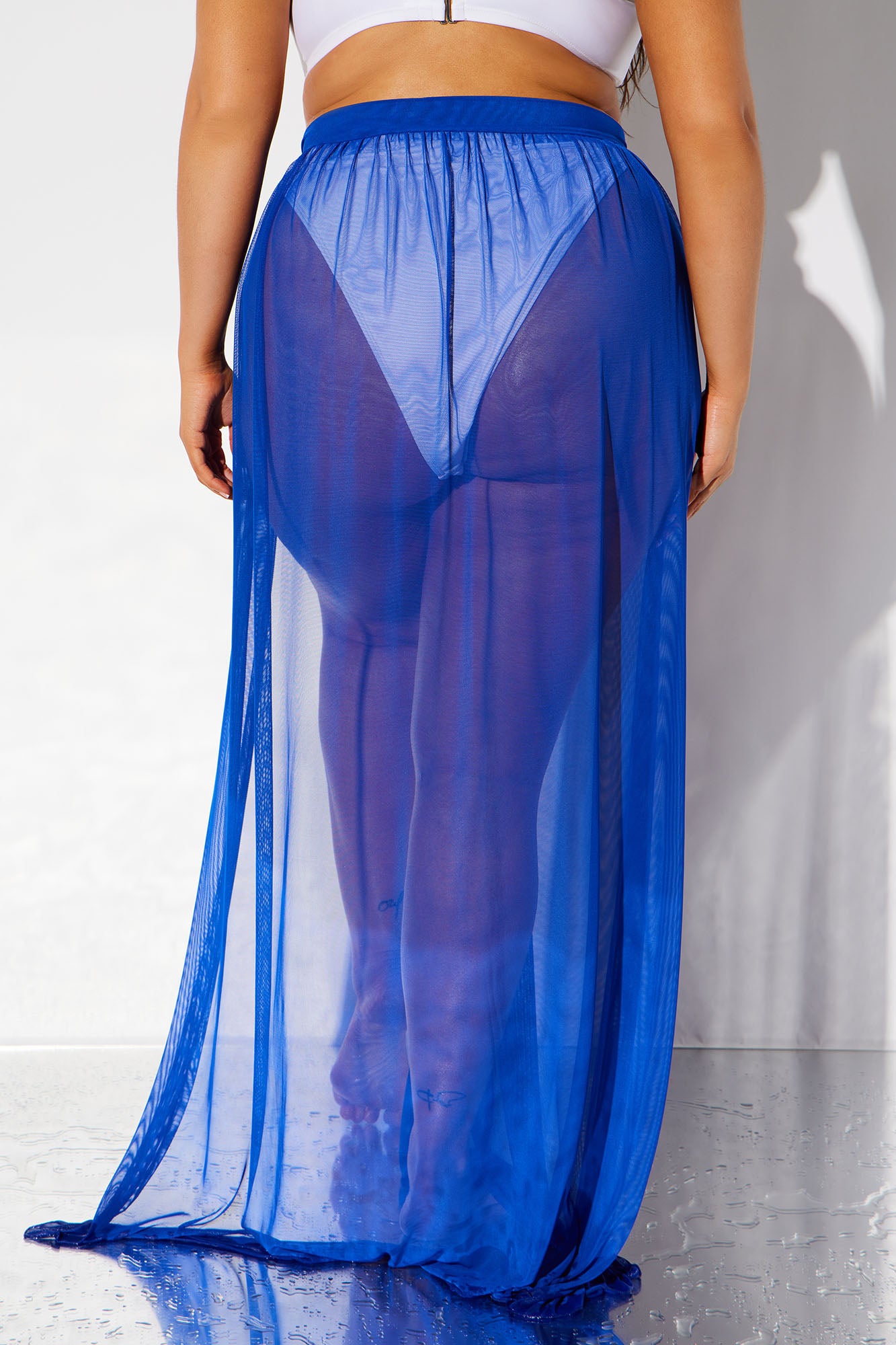 Available In Royal. Mesh Swim Tie Maxi Skirt Pair with any style from our Maui Mix and Match Swim Collection to complete the look! Side Slit High Waist Sheer Unlined Mesh Final Sale 96% Polyester 4% Spandex Imported |