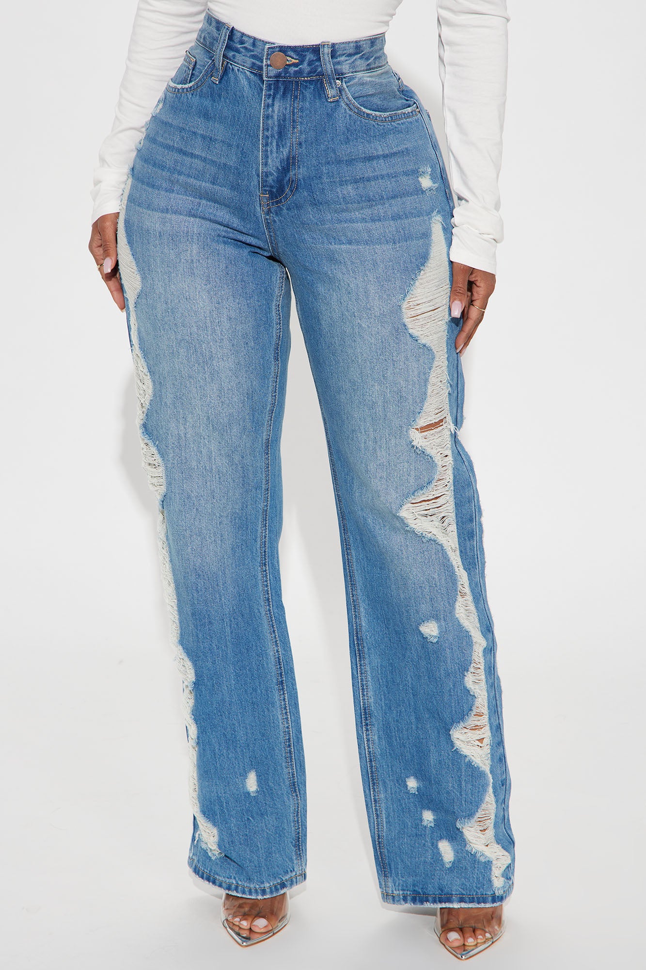 Available In Medium Wash And Grey Straight Leg Button & Zipper Closure 5 Pockets Ripped Detail Non Stretch 10.5" Front Rise 32" Inseam Disclaimer: Due To The Specialized Wash & Distressing Process, Each Garment Is Unique 85% Cotton, 8% Rayon 7% Polyester Imported |