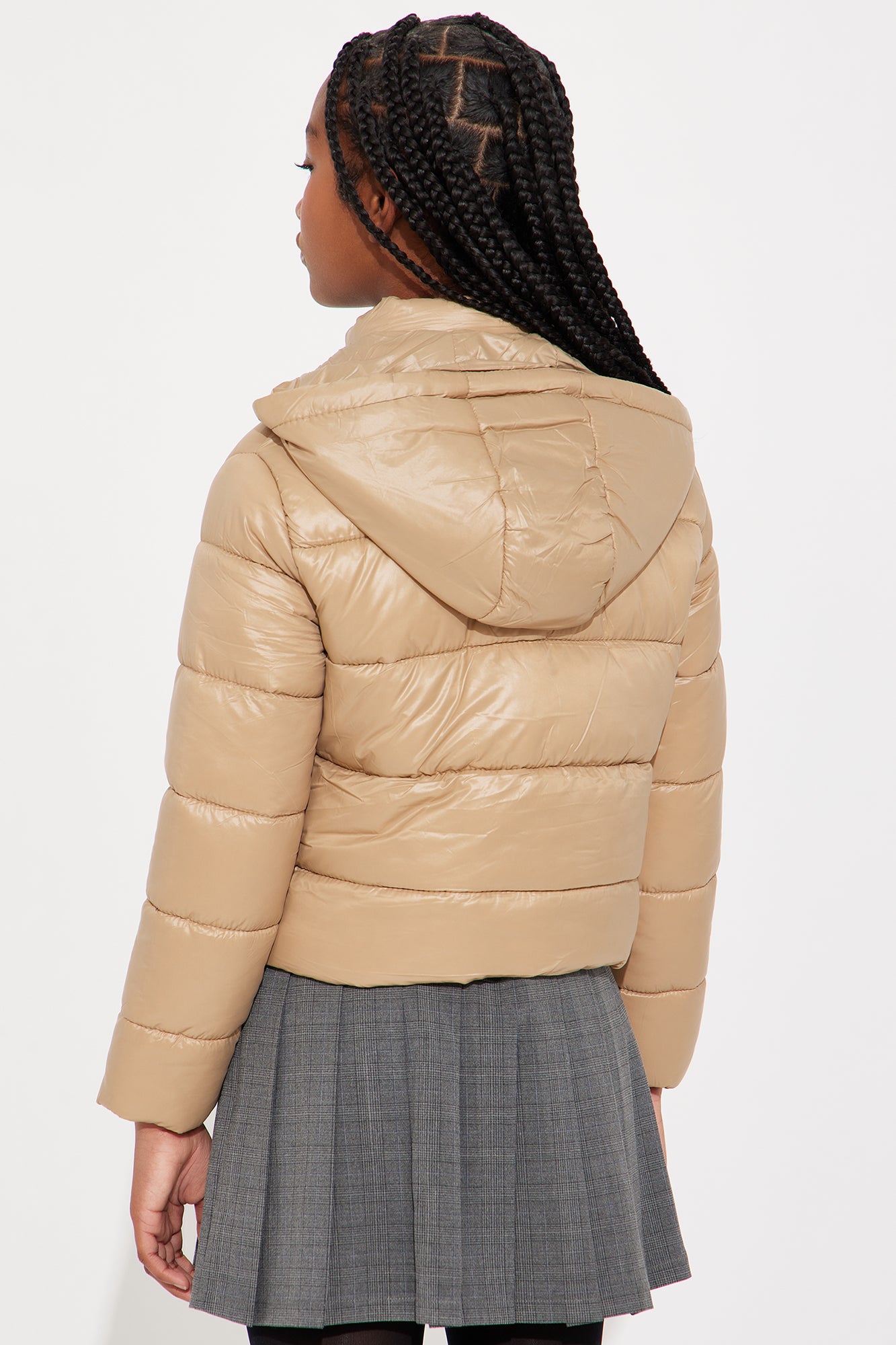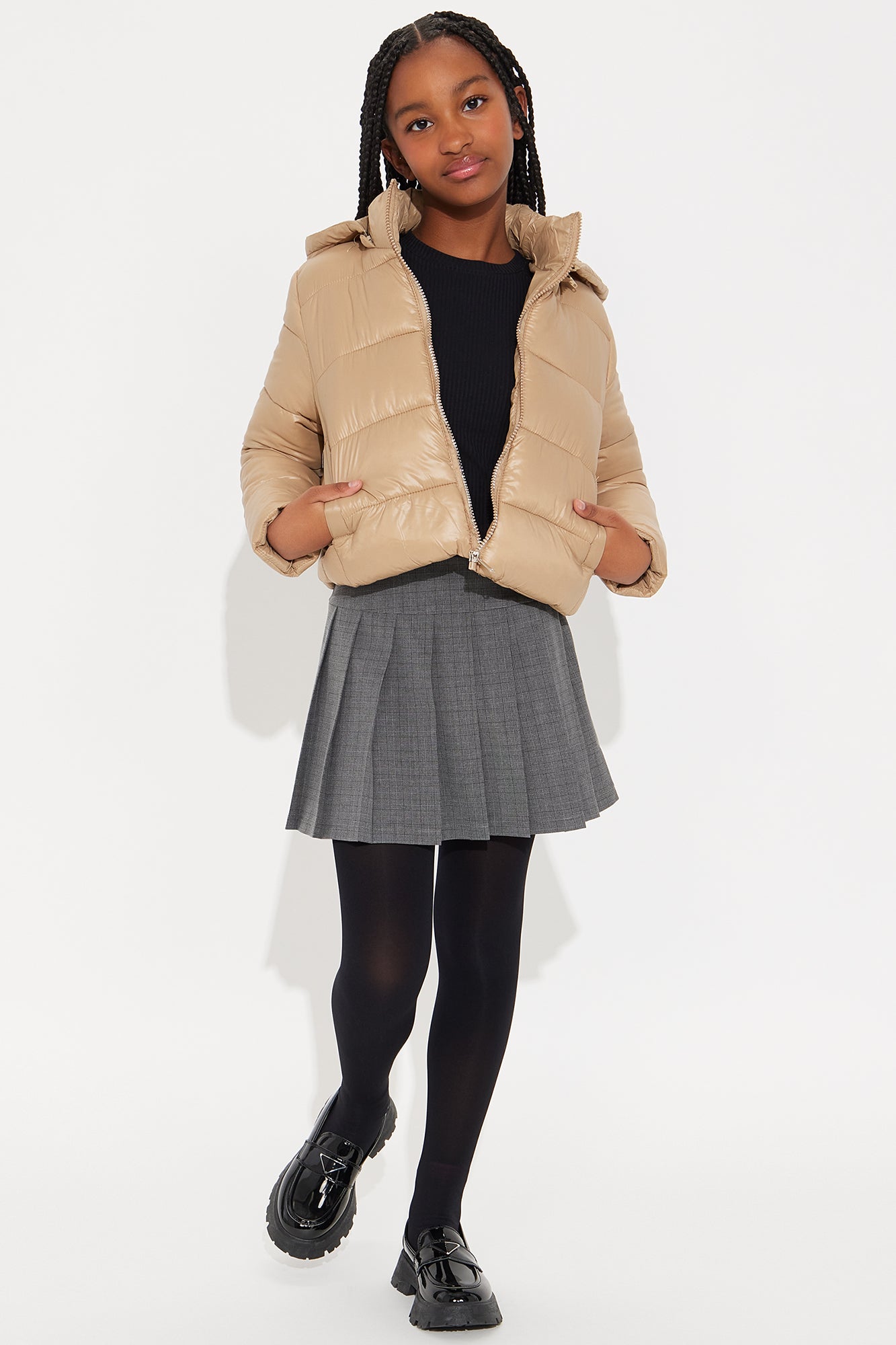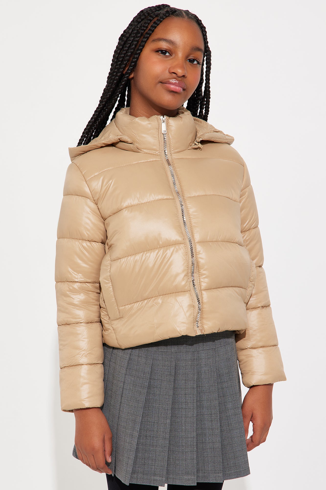 Available In Brown. Puffer Jacket Zip Up Detachable Hood Side Pockets Shell/Lining: 100% Polyester Model Wears Size 10 Imported |