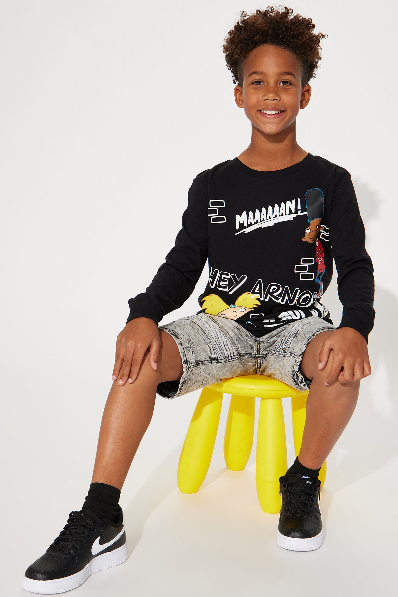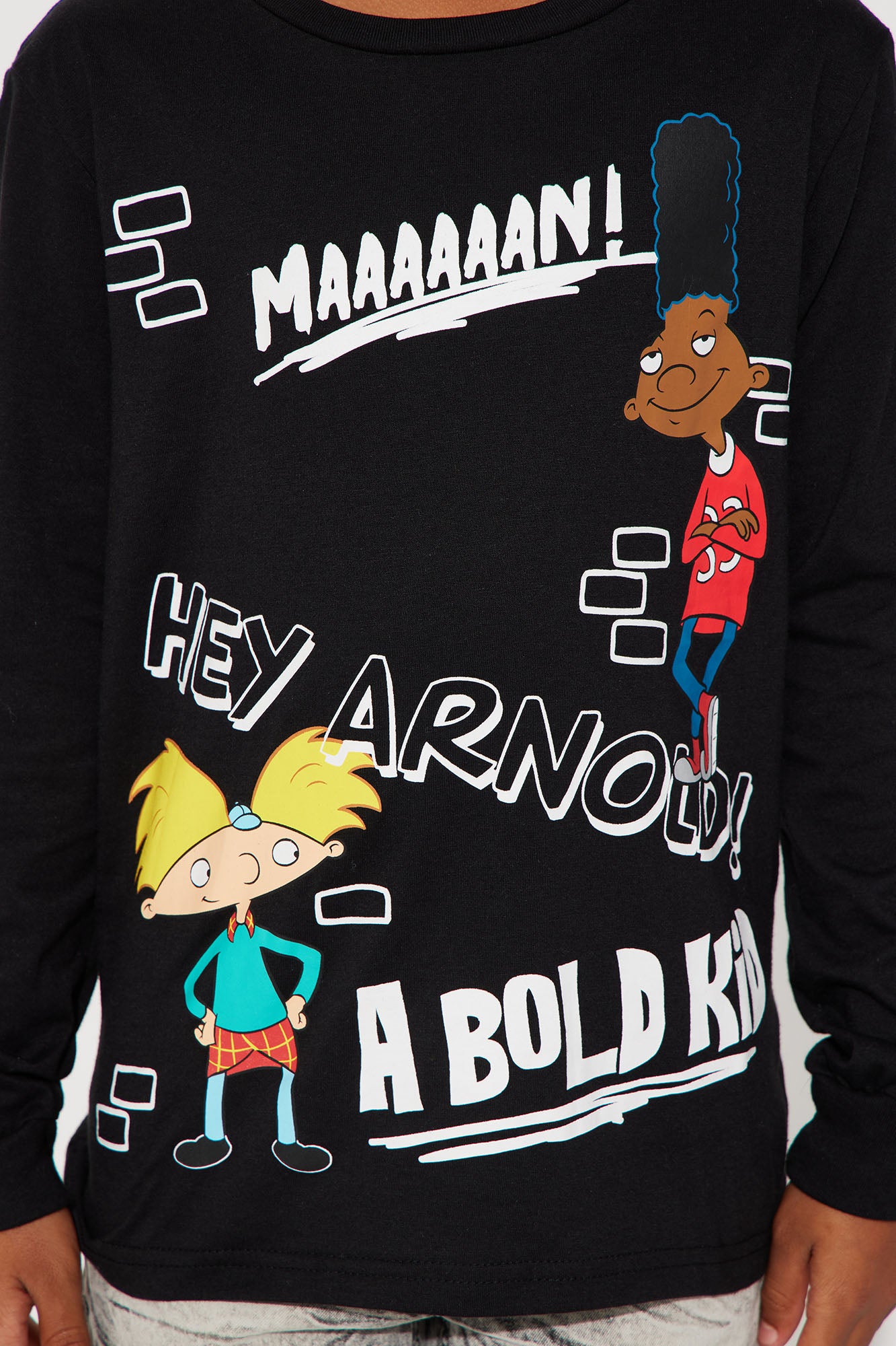 Available In Black. Screen Top Long Sleeve License Conversational Hey Arnold! Graphic Disclaimer: Due To The Printing Process A Difference In Saturation May Occur. Each Garment Is Unique.? 60% Cotton 40% Polyester Imported |