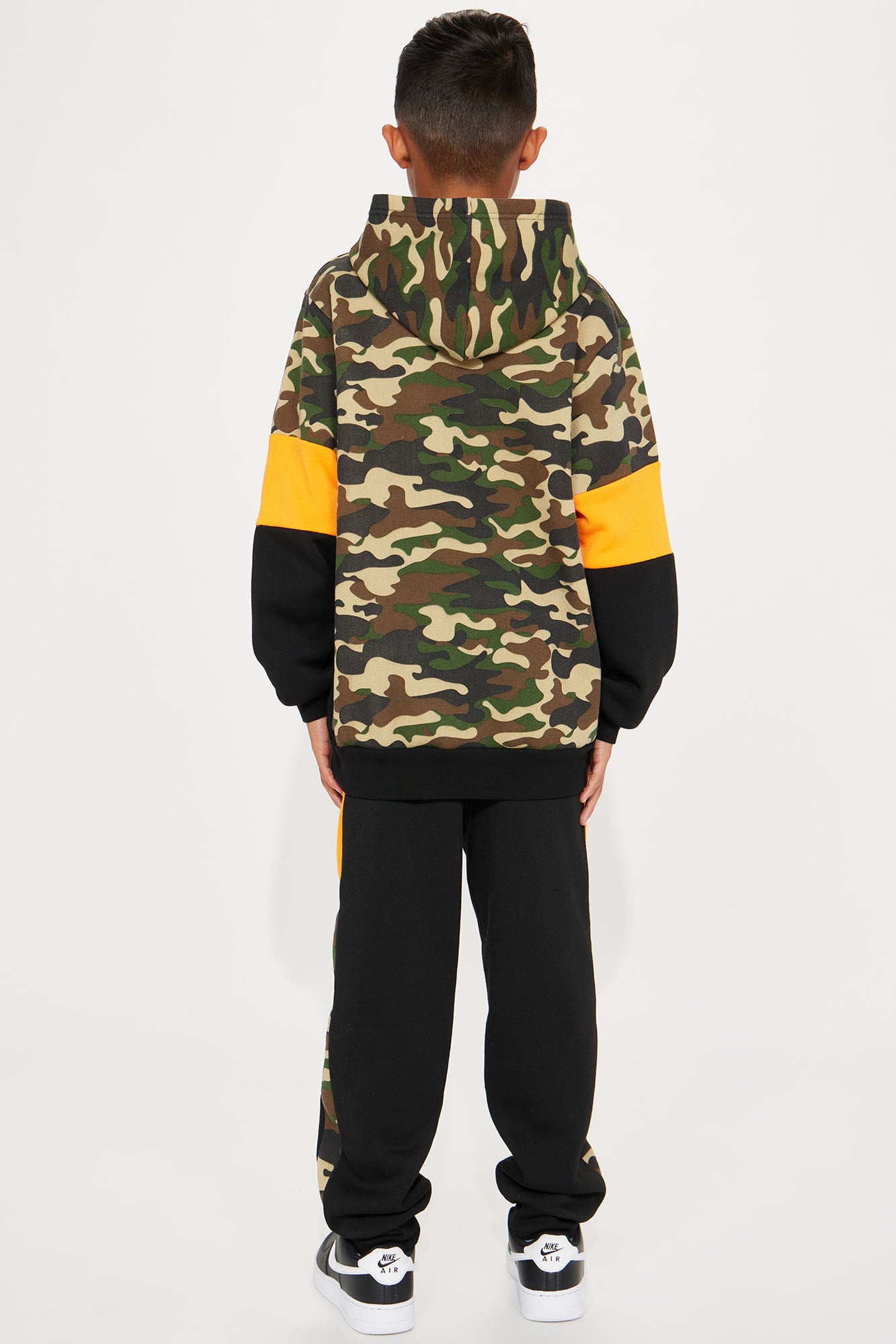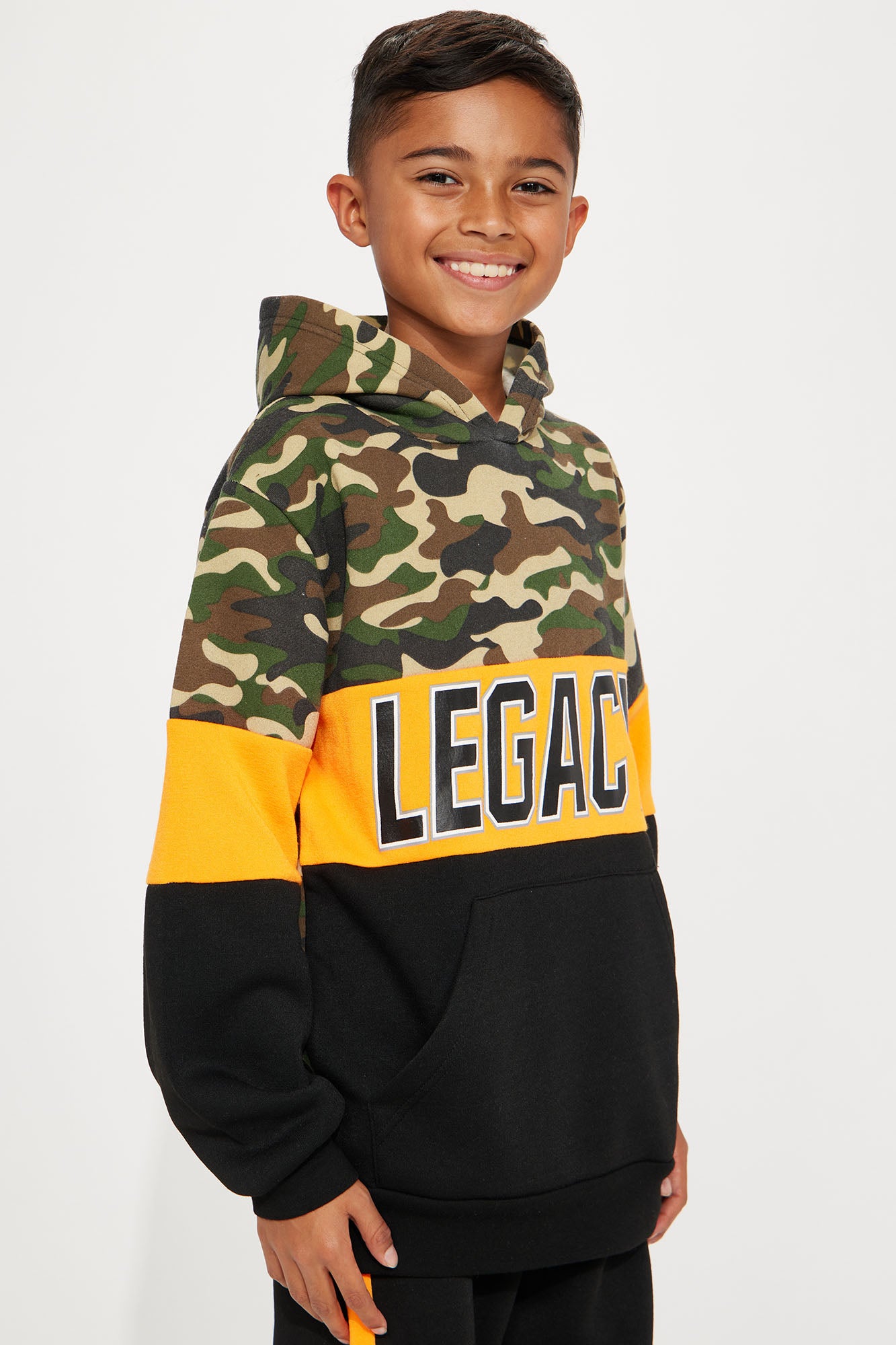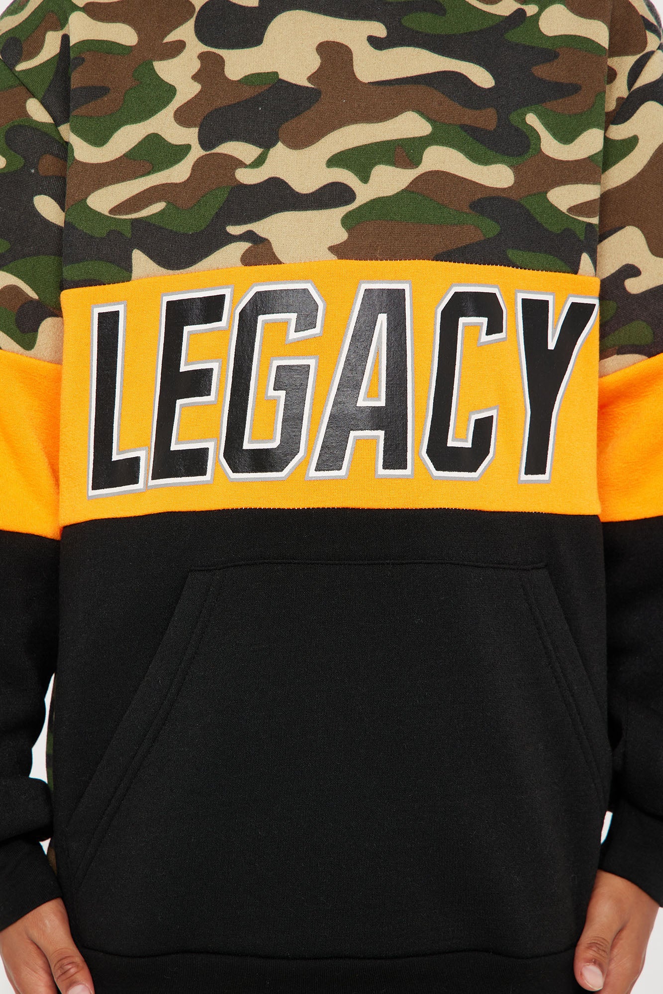 Available In Black/Orange. Jogger Pant Set Colorblock "Legacy" Verbiage Hooded Detail Camo Print Disclaimer: Due To The Printing Process A Difference In Saturation May Occur. Each Garment Is Unique.Print Placement Will Vary. 100% Polyester Imported |