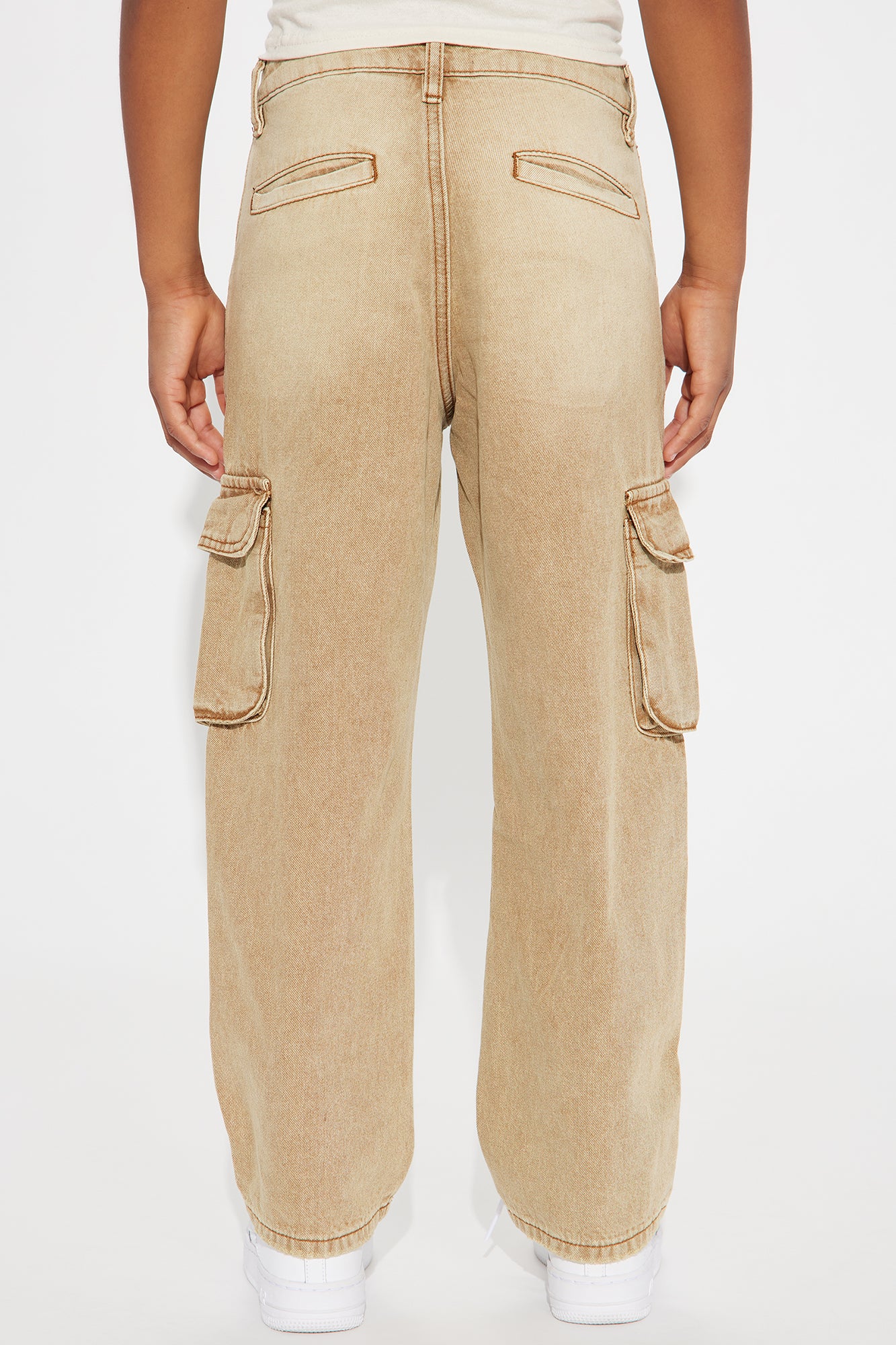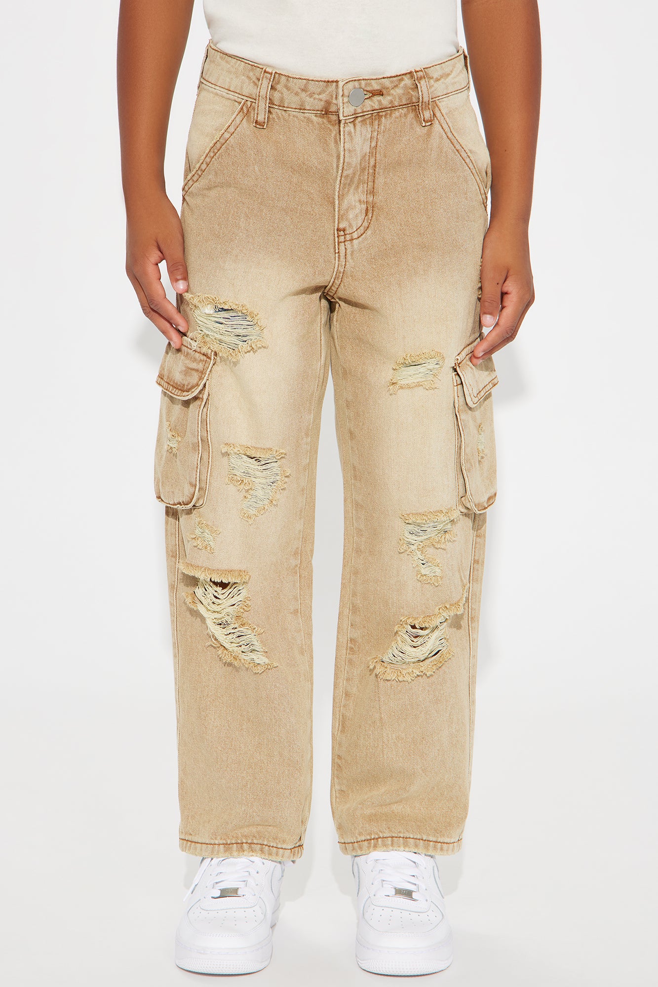 Available In Tan. Cargo Jean Straight Leg Distressed Detail Button Closure 85% Cotton / 10% Viscose / 5% Polyester Model Wears Size 10 Pair With "Can't Catch My Drive Trucker Jacket" Imported |