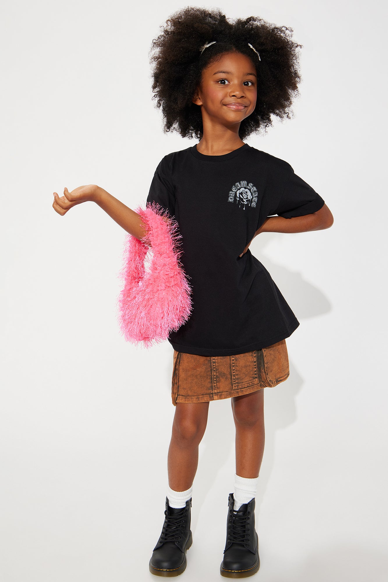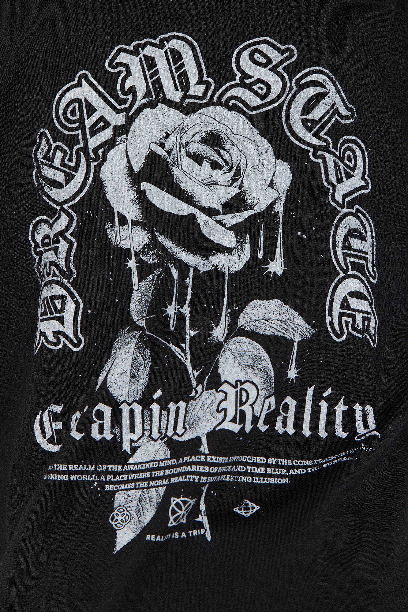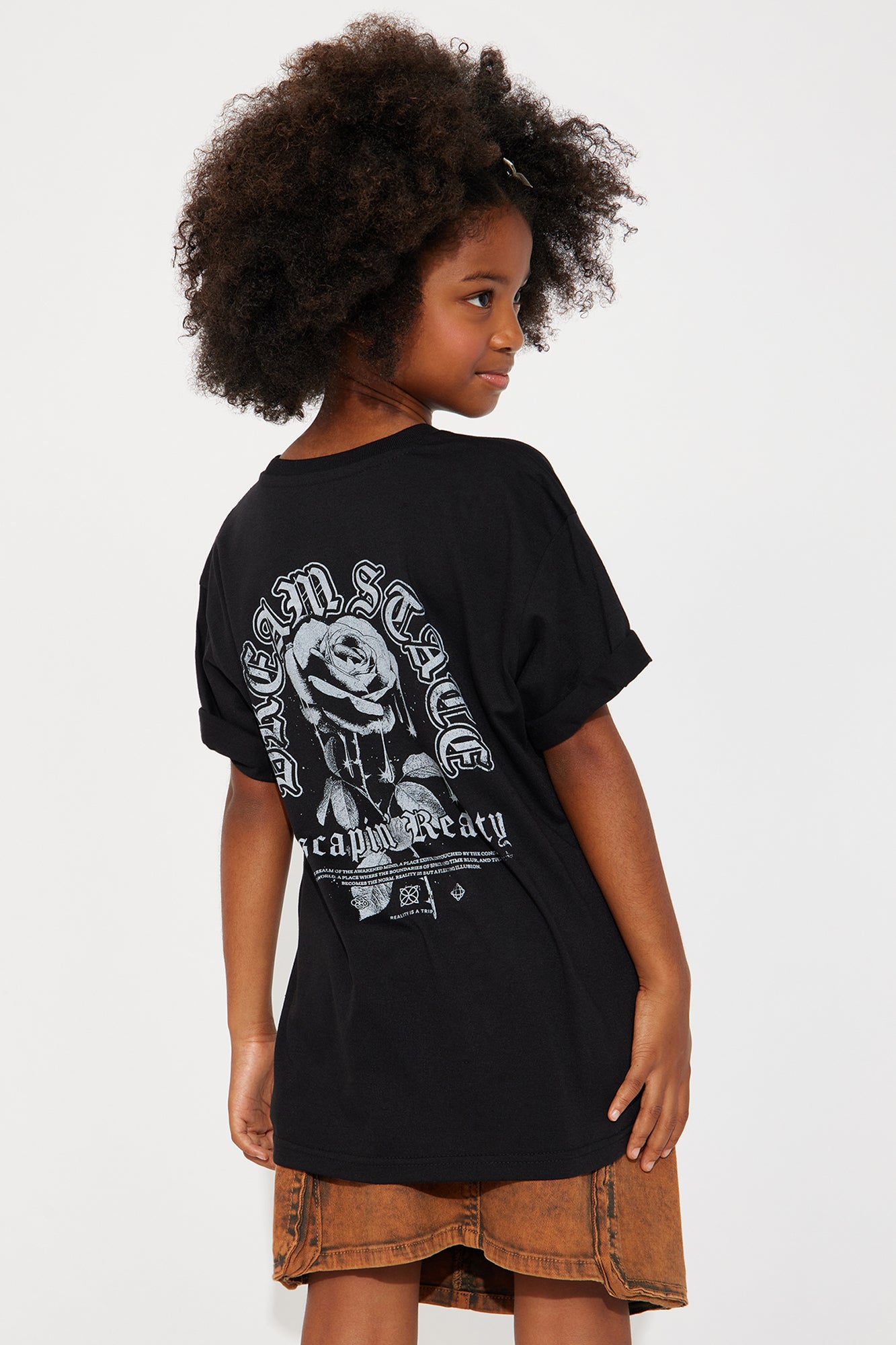 Available In Black. Short Sleeve Crew Neck Screen Print "Dream State" & " Escape Reality" Verbiage 60% Cotton, 40% Polyester Model Wears Size 8/10 Mommy & Me Takedown Of "Dream State Rose Graphic Tee" Imported |