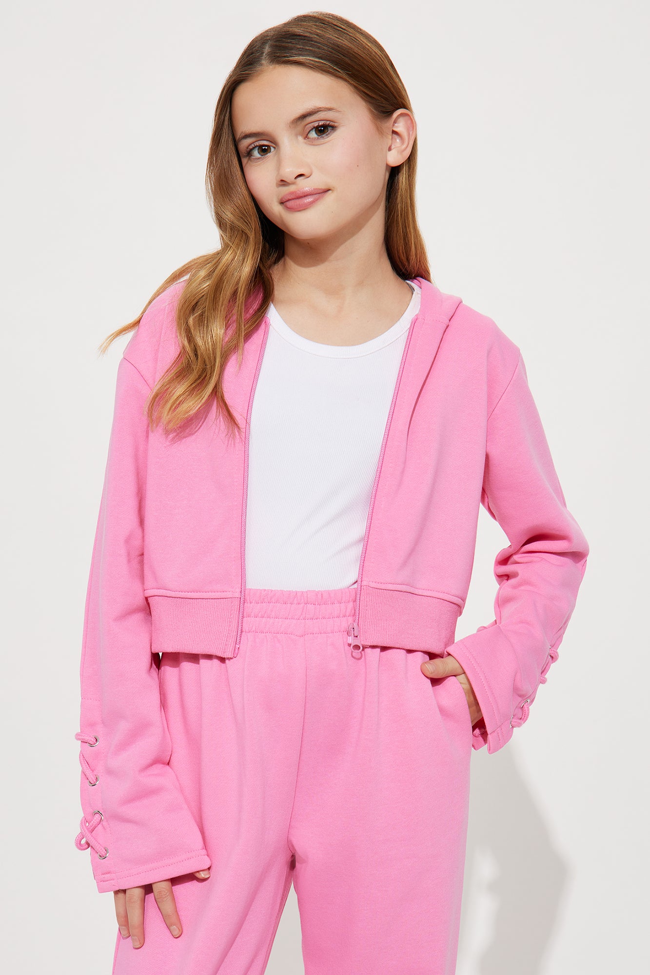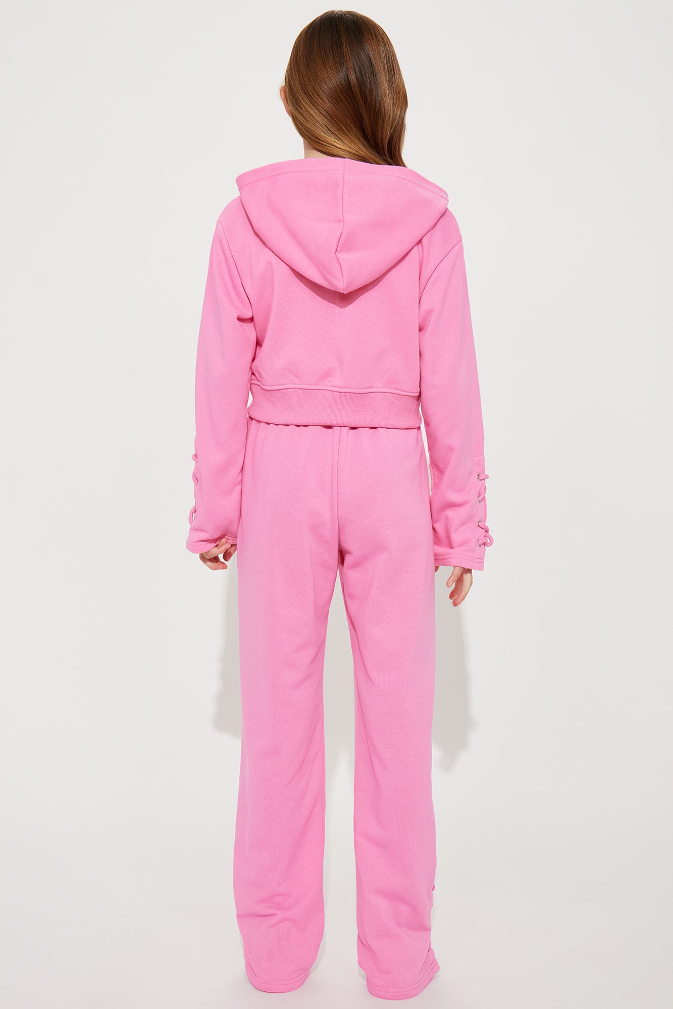 Available In Pink. 2 Piece Set Zip Hoodie Long Sleeve Pant French Terry 60% Cotton, 40% Polyester Model Wears Size 10/12 Mommy & Me Takedown Of "Day Dreamer Lounge Pant" Mommy & Me Takedown Of "Day Dreamer Lounge Zip Up Hoodie" Imported |