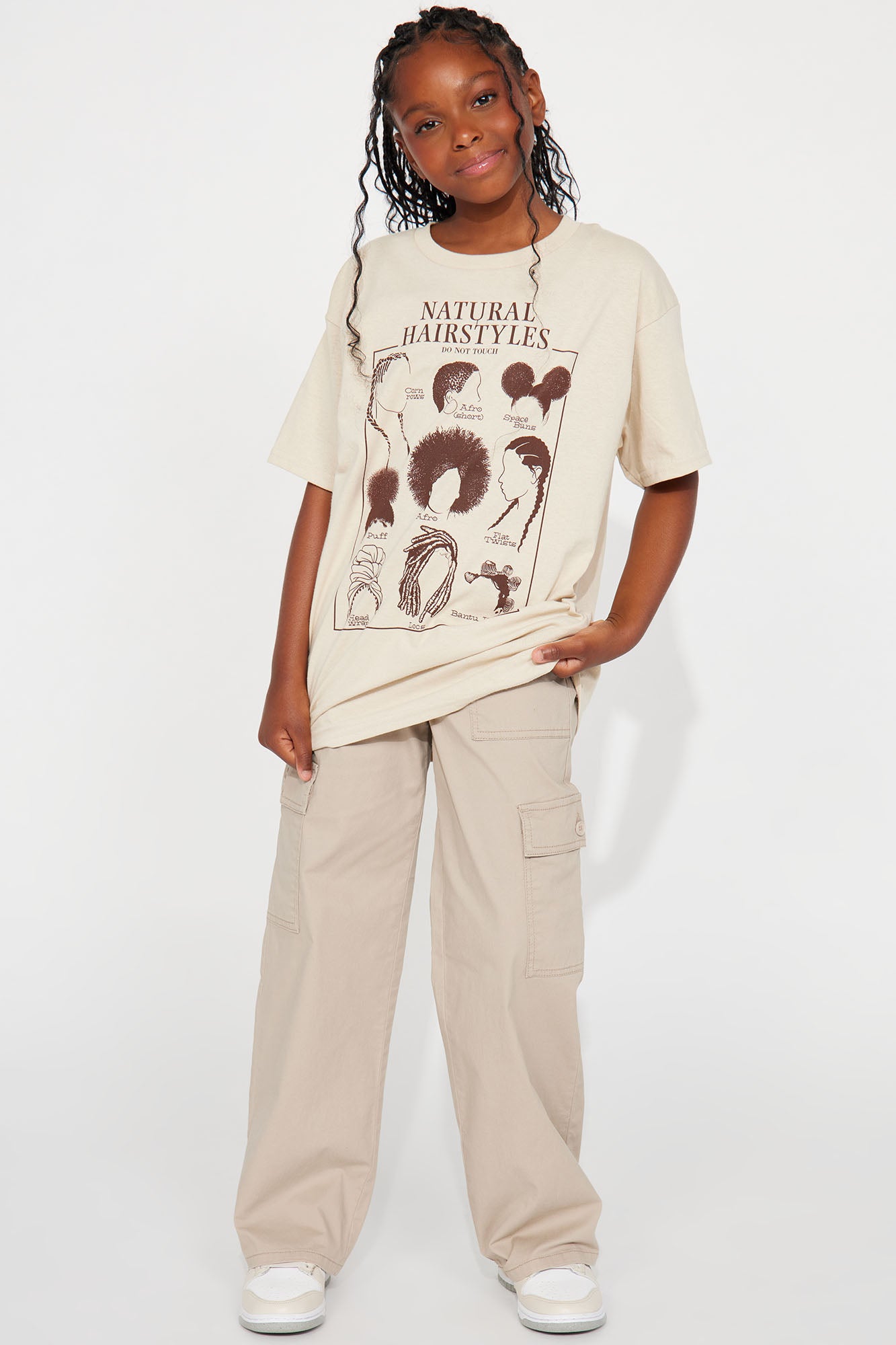 Available In Taupe. Crew Neck Short Sleeve Front Screen Stretch Model Wears Size 10/12 Mommy & Me Takedown of "Embracing Natural Beauty Graphic Tee" 100% Cotton Imported |