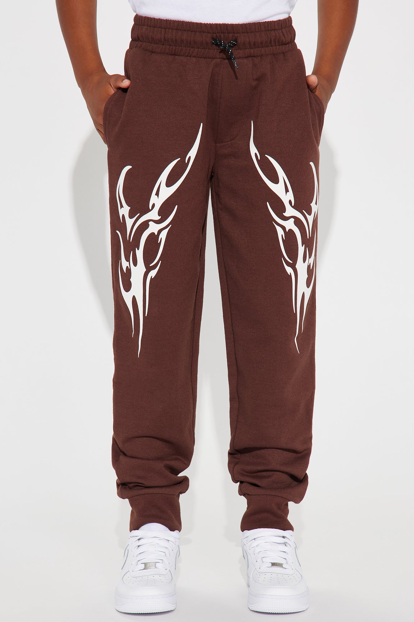 Available In Brown. Fleece Jogger Pant Screen Print 60% Cotton 40% Polyester Model Wears A Size 10/12 Imported |