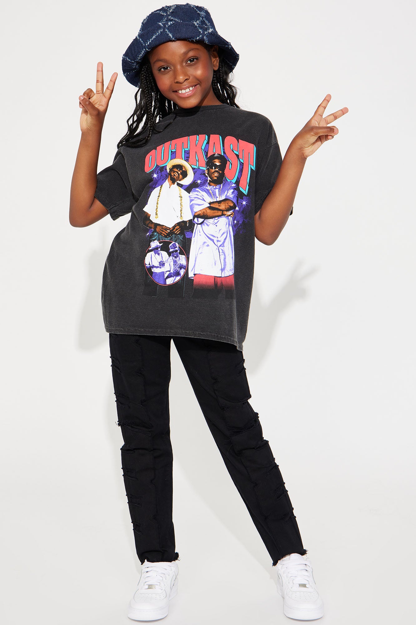 Available In Black. T-Shirt Crew Neck Short Sleeve Outkast Graphic Front Screen Stretch 100% Cotton? Model Wears Size 10/12 Mommy & Me Takedown of "So Fresh Outkast Graphic T-Shirt" Imported |