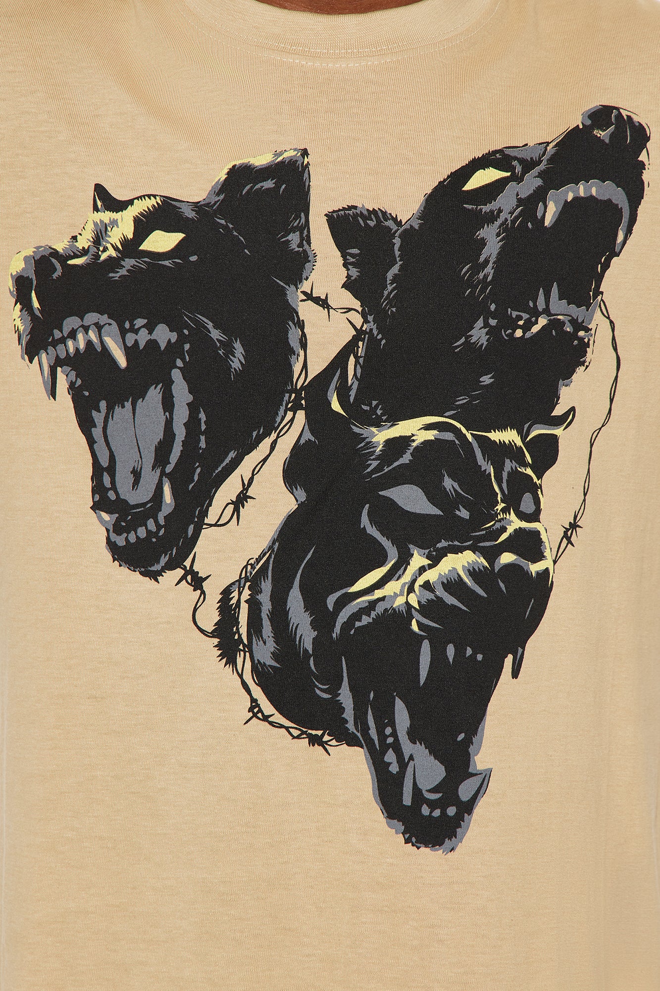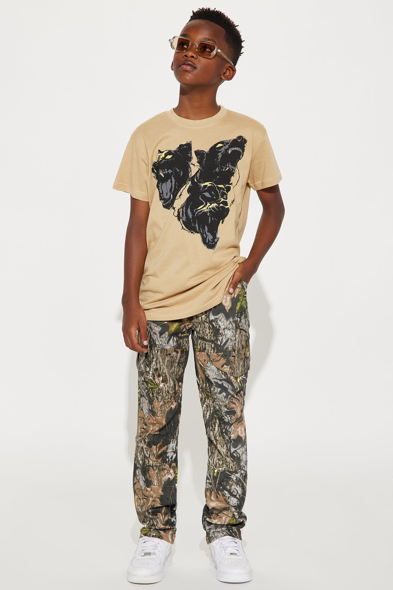 | Available In Sand. T-Shirt Short Sleeve Crew Neck Front Screen Dog Graphic 100% Cotton Model Wears Size M S= 6/7, M = 8/10, L = 12/14, XL = 16/18 Imported |