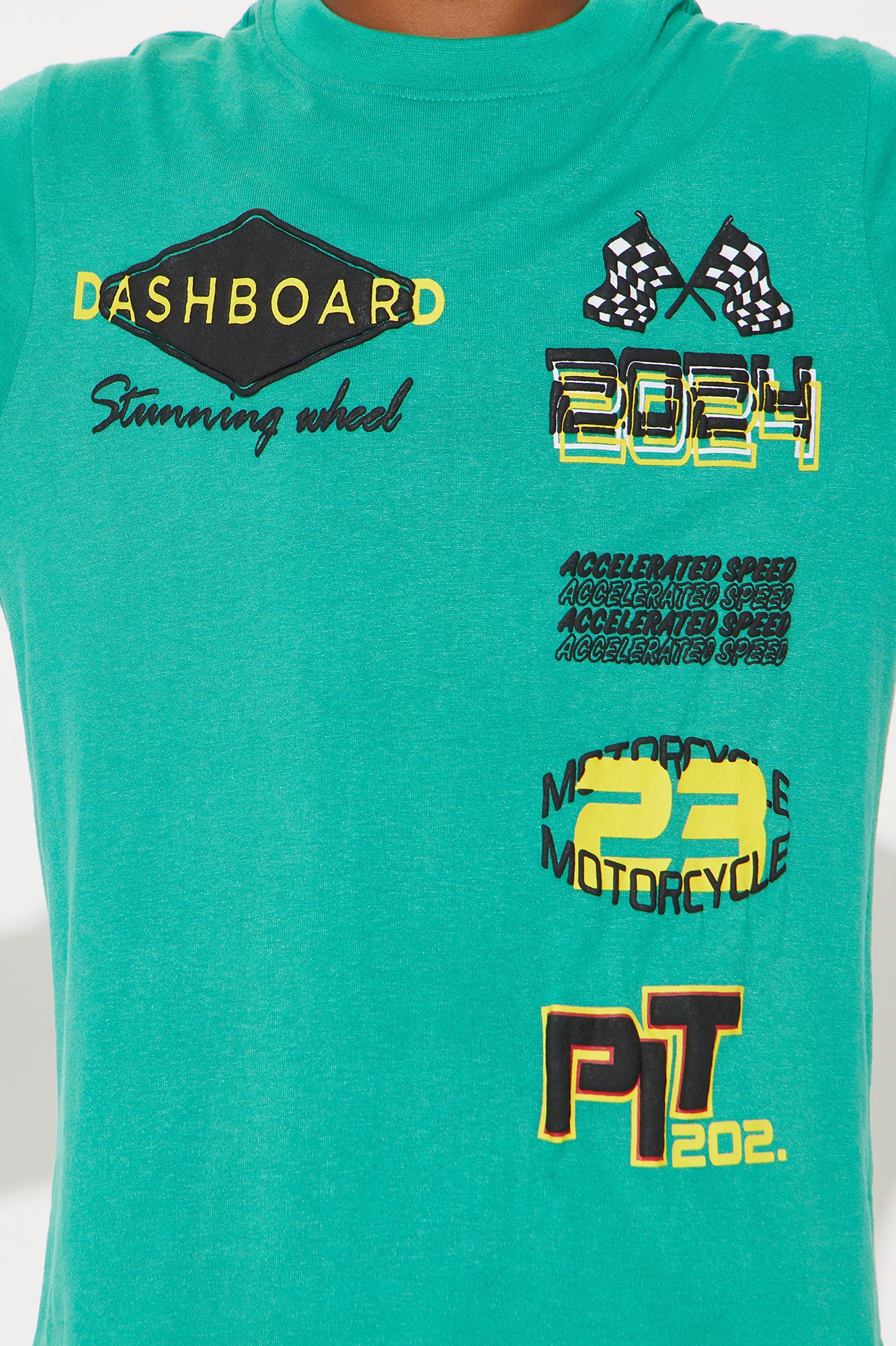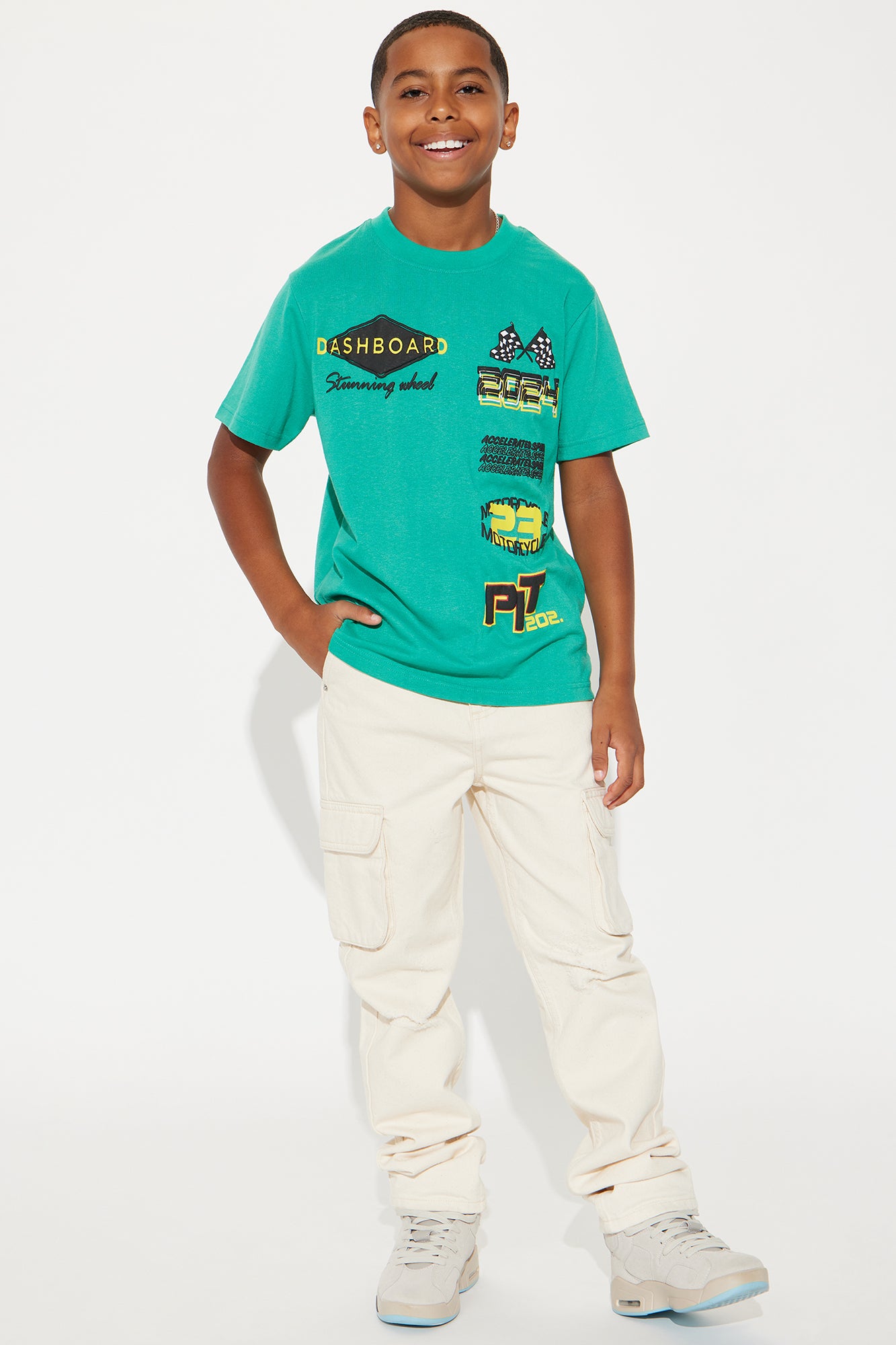 Available In Green. HD Print Crew Neck Short Sleeve Model Wears Size 10/12 60% Cotton 40% Polyester Imported |