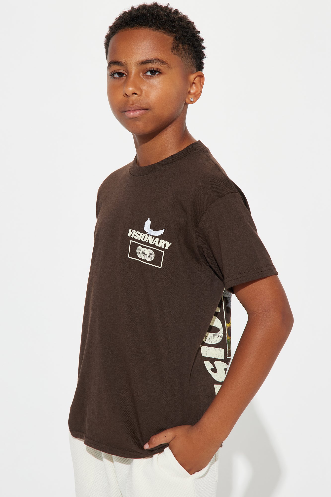Available In Chocolate. Crew Neck Short Sleeve Front & Back Screen Print Model Wears Size M Daddy & Me Takedown of "Head In The Clouds Short Sleeve Tee" S=(7/8), M=(10/12), L=(14/16), XL=(18) 100% Cotton Imported |