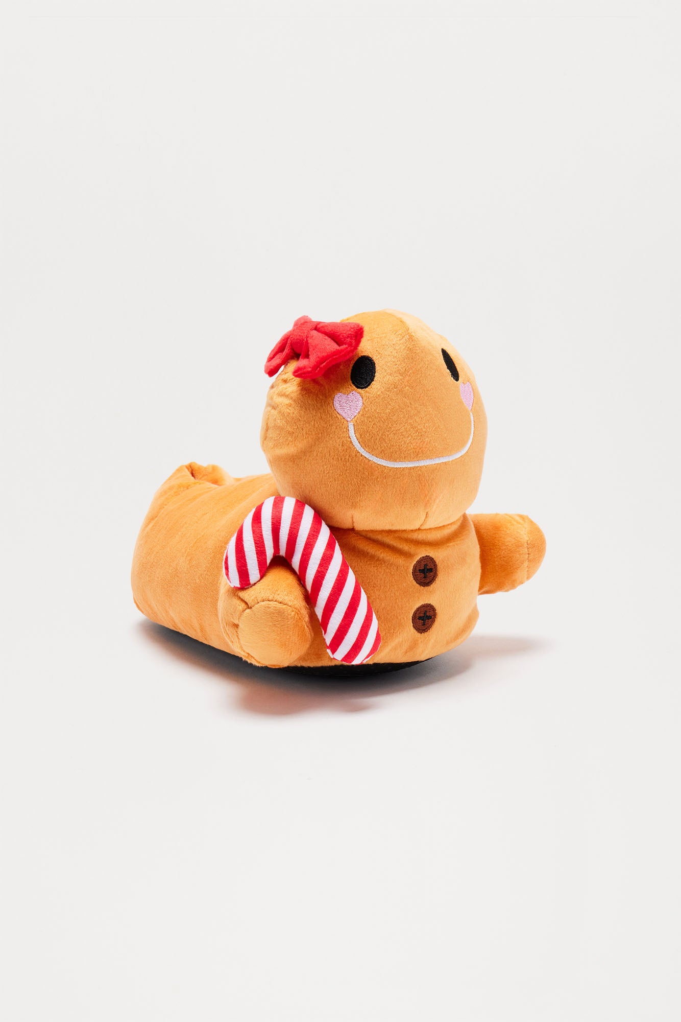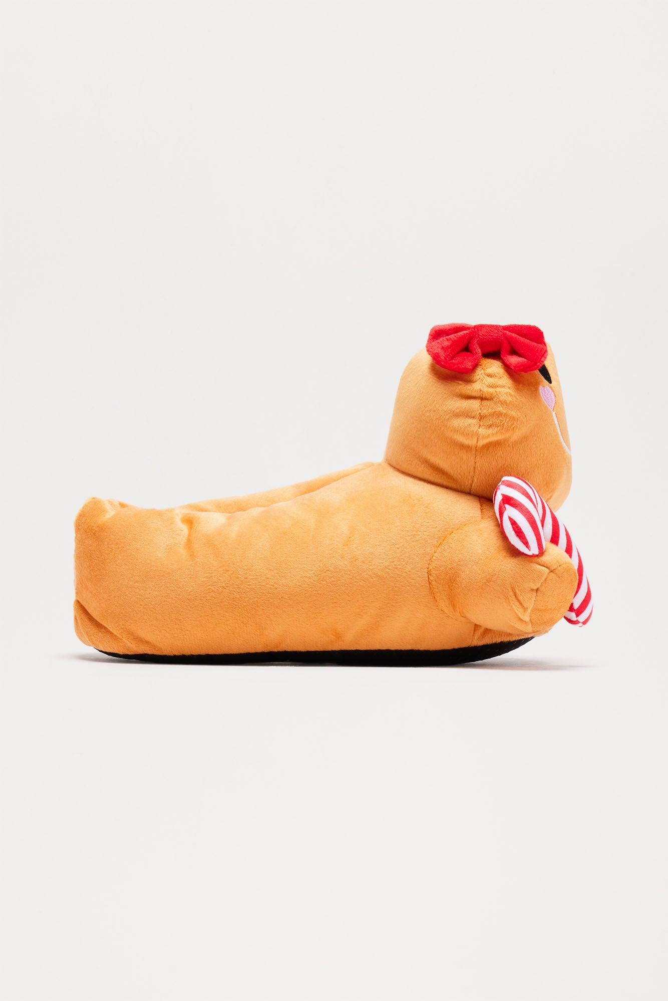 Available In Brown. Ginger Bread Man Slippers Closed Toe Round Toe Slip On All Man Made Material, Faux Fur Model Wears Size 4/5 Mommy & Me Takedown Of "Holiday Cheer Slippers" Imported |