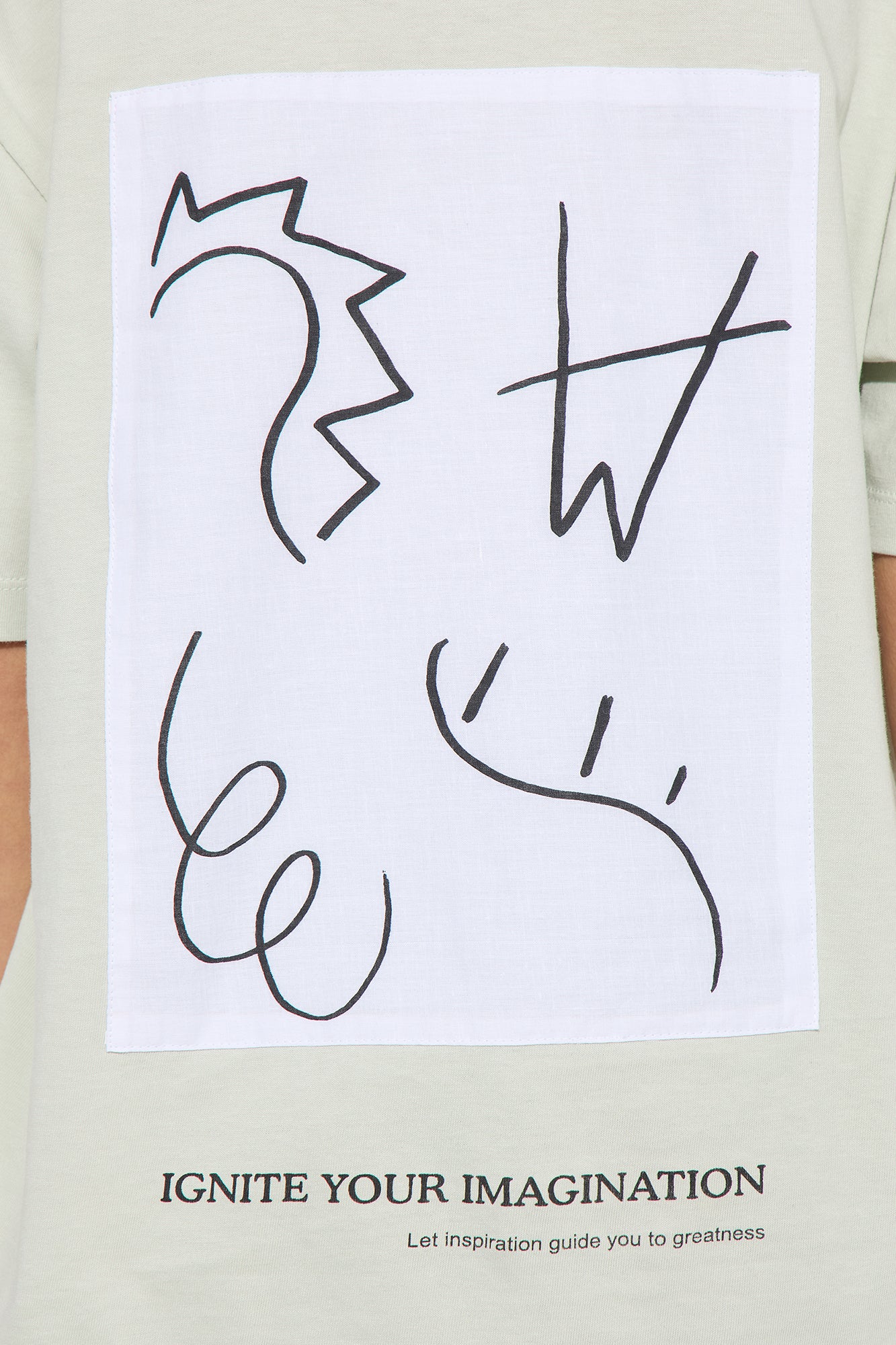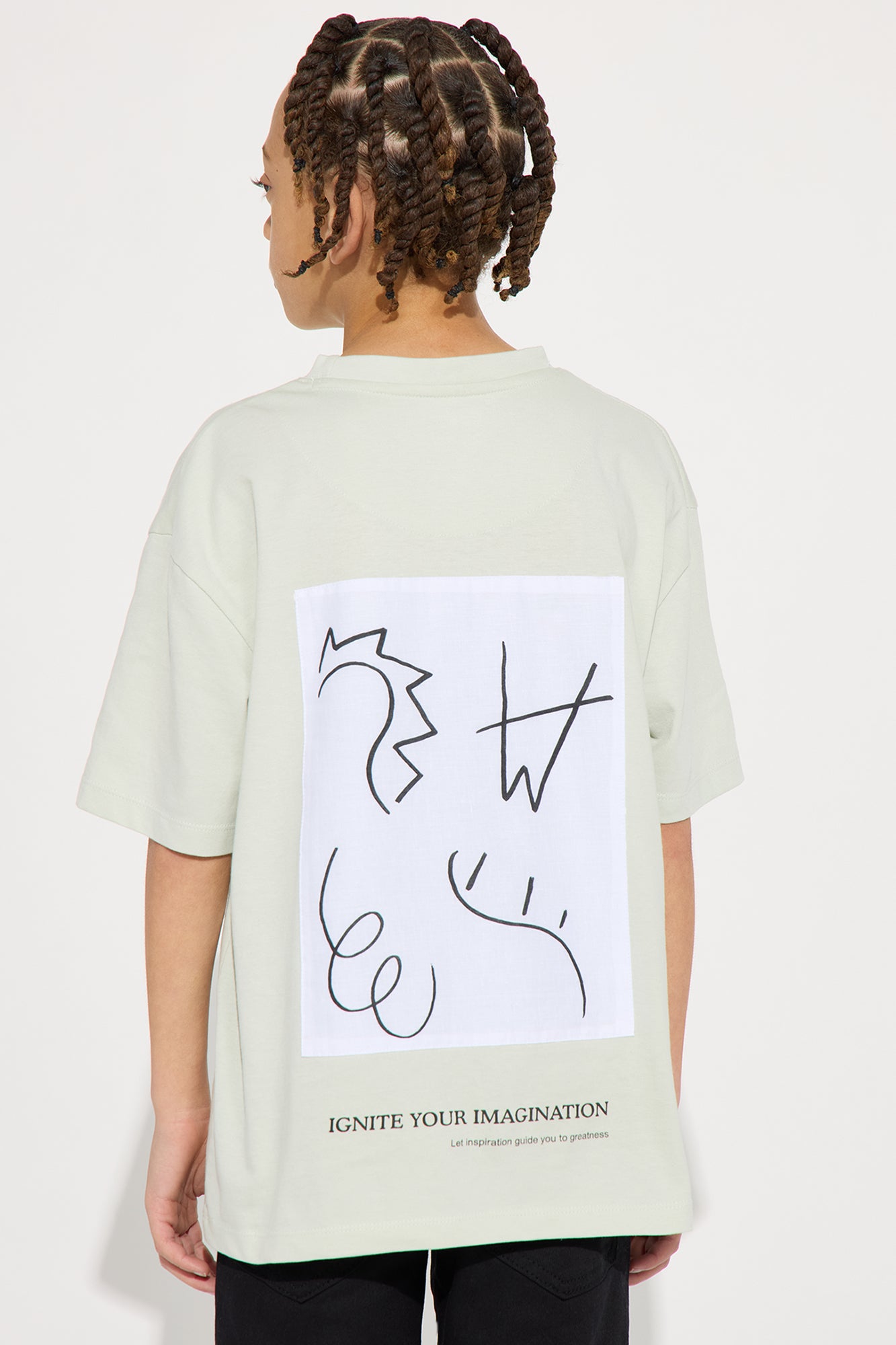 Available In Mint. T-Shirt Short Sleeve Crew Neck Front and Back Screen Back Screen Is Sewn On "Ignite Your Imagination" Verbiage Doodle Graphic 100% Cotton Model Wears Size 8/10 Imported |