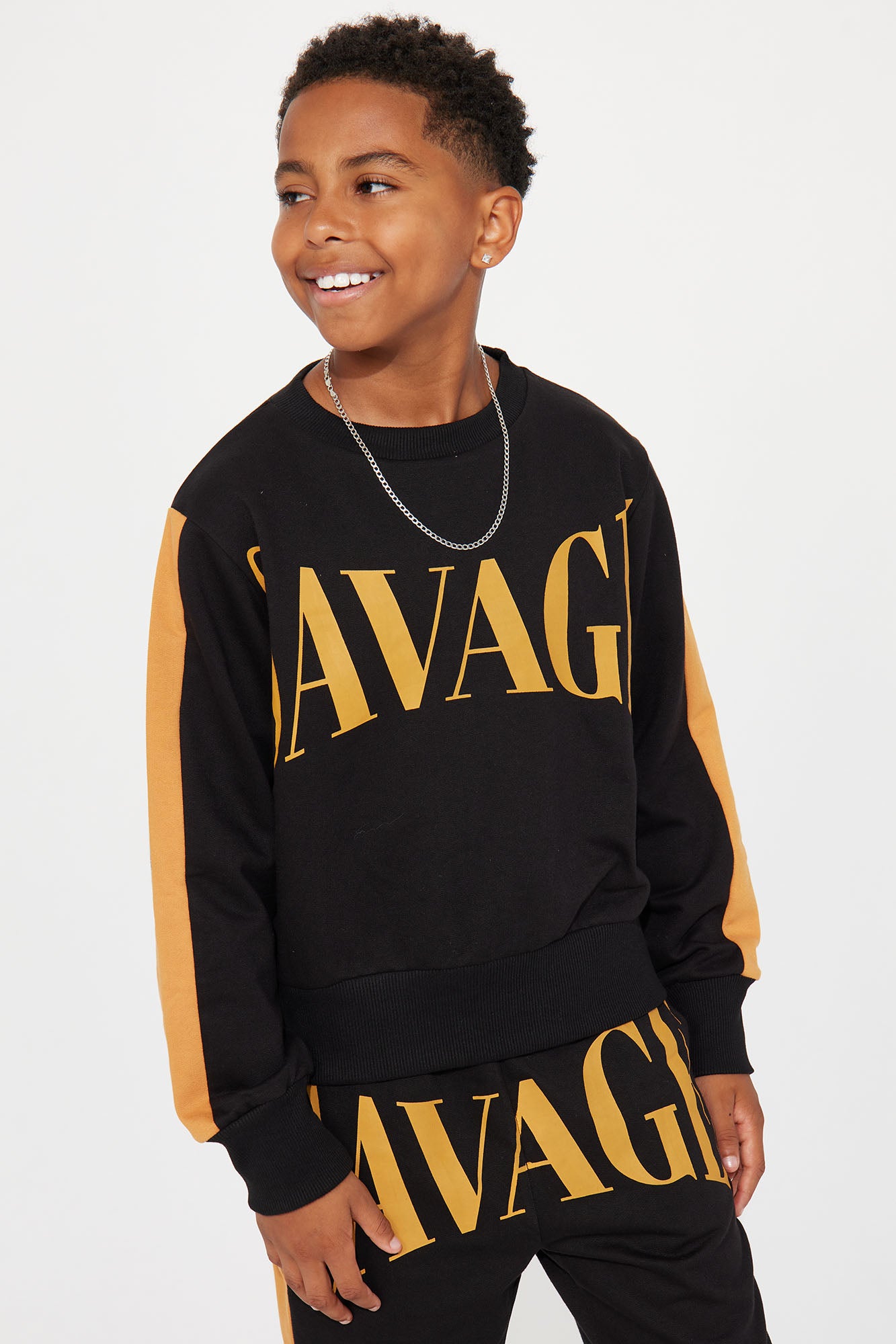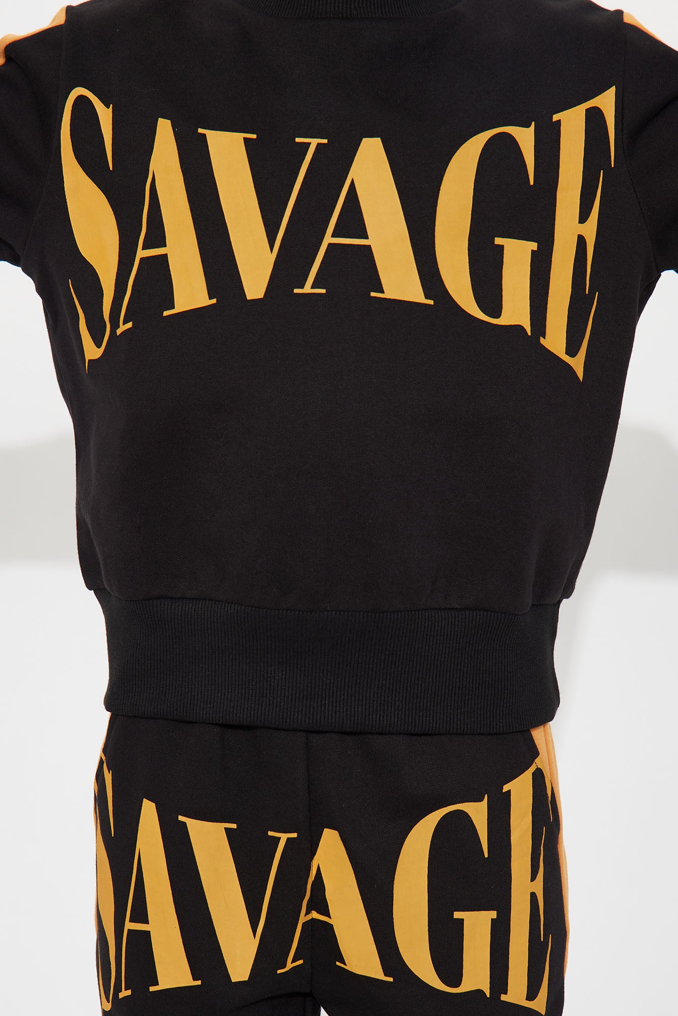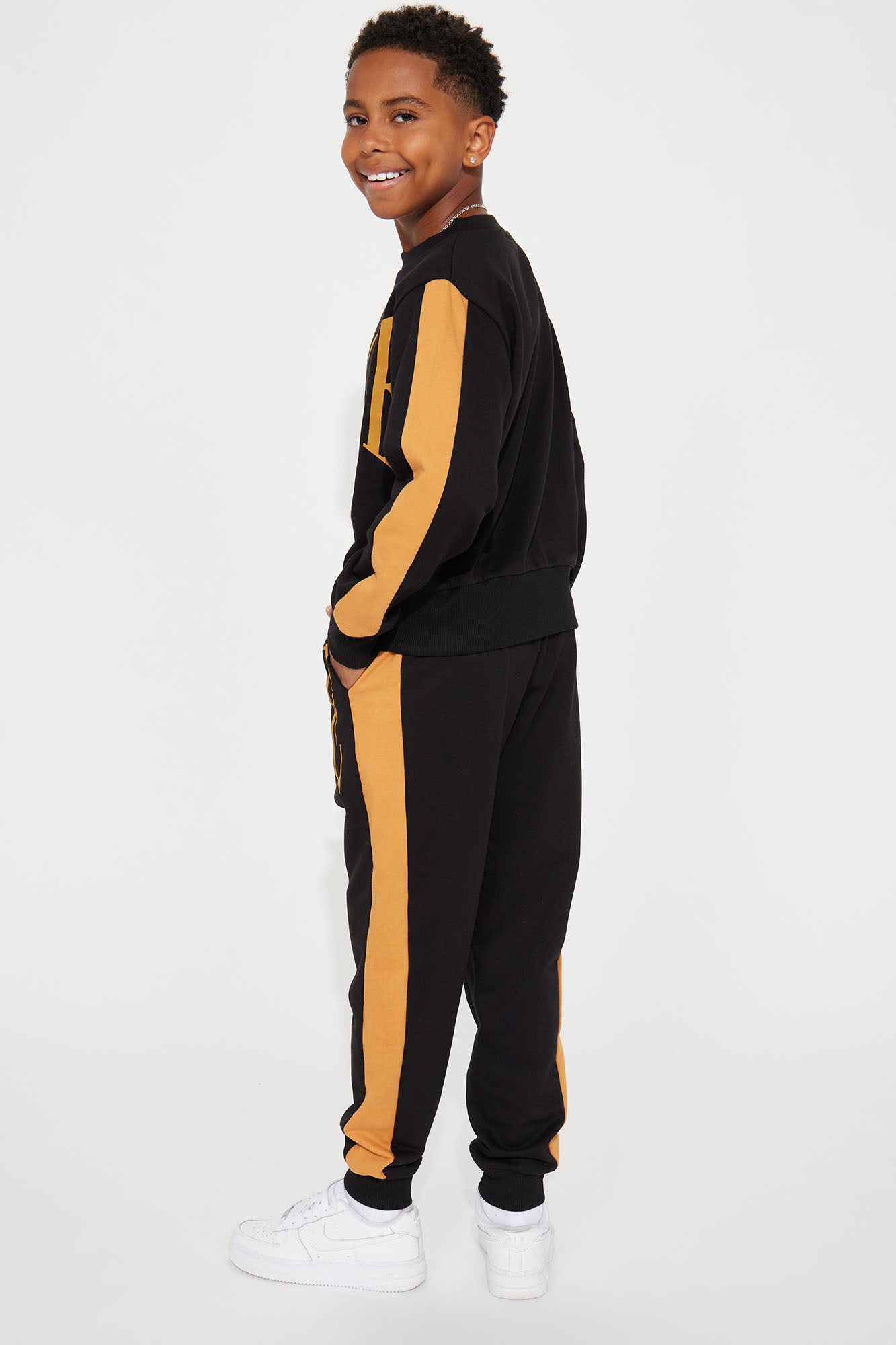 | Available In Black. Pant Set Solid Jogger Long Sleeve French Terry Screen Print 60% Cotton 40% Polyester Model Wears Size 10 Imported |