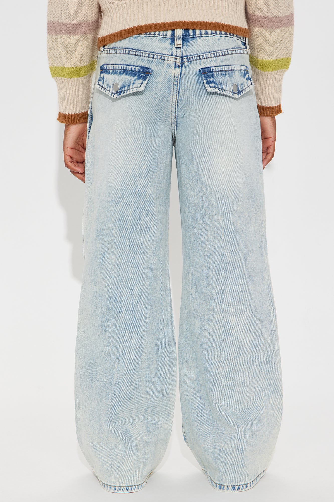 | Available In Light Blue Wash. Straight Leg Jean Pockets Seaming Mid Rise 85% Cotton, 15% Polyester Model Wears Size 10 Mommy & Me Takedown of "In An Instant Acid Wash Straight Leg Jeans" Imported |