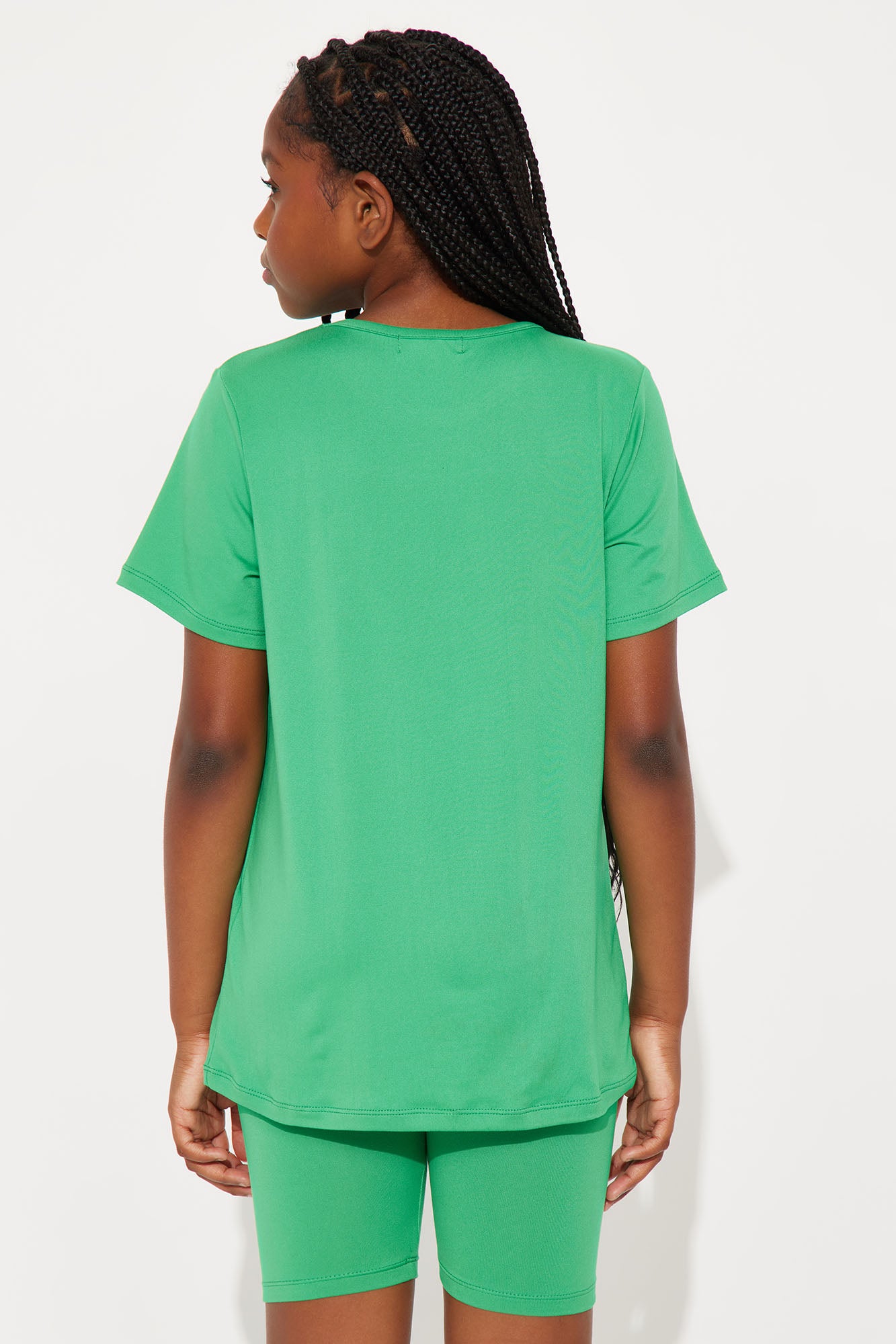 Available In Kelly Green. 2 Piece Set Oversized T-Shirt Short Sleeve Crew Neck Front Screen "Good Vibes" Verbiage Dripping Smiley Graphic Bike Short 88% Polyester12% Spandex Model Wears Size 10/12 Imported |