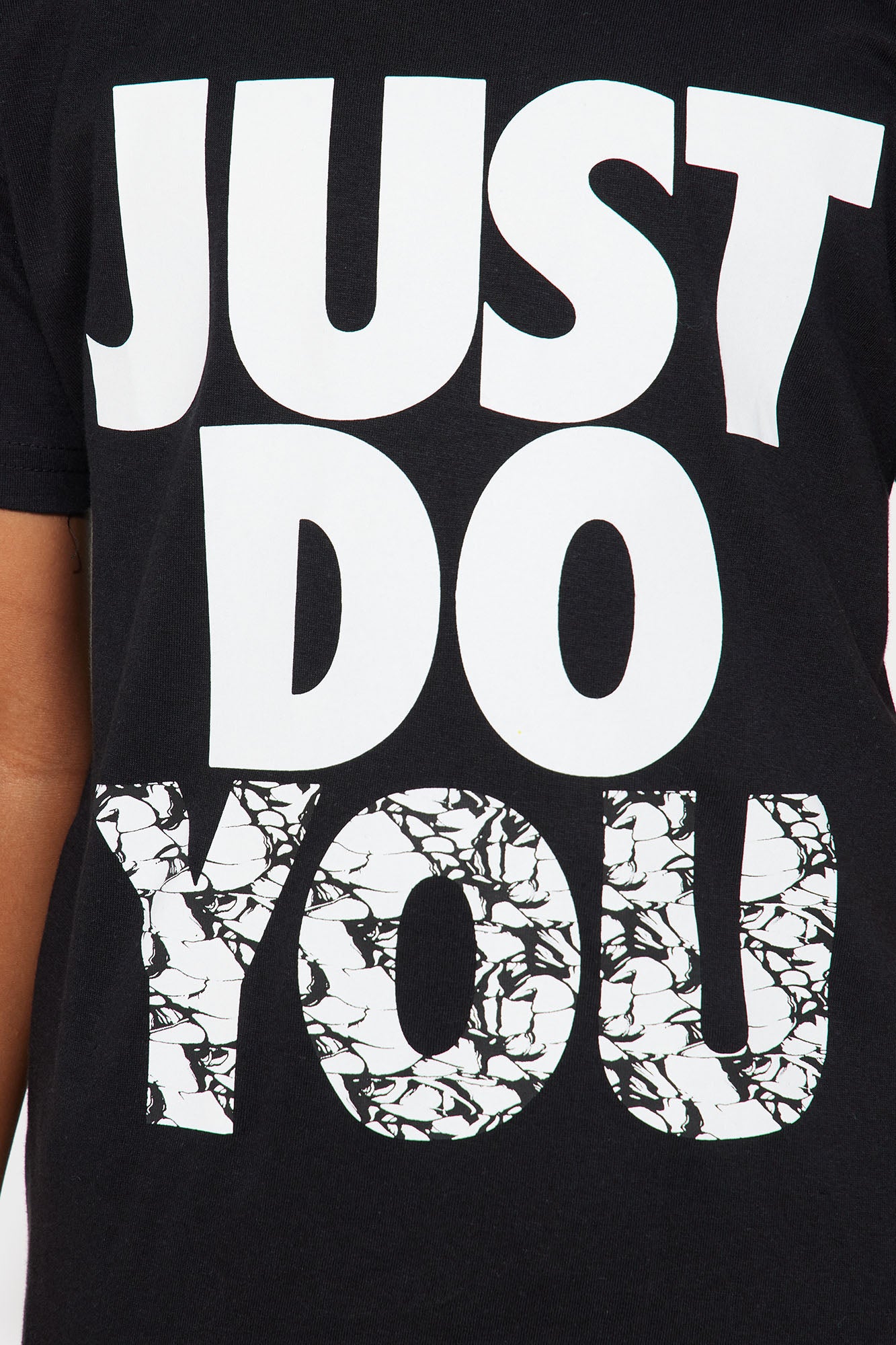 Available In Black. T-Shirt Short Sleeve Front Screen Crew Neck "Just Do You" Verbiage Model Wears Size 8/10 100% Cotton Imported |