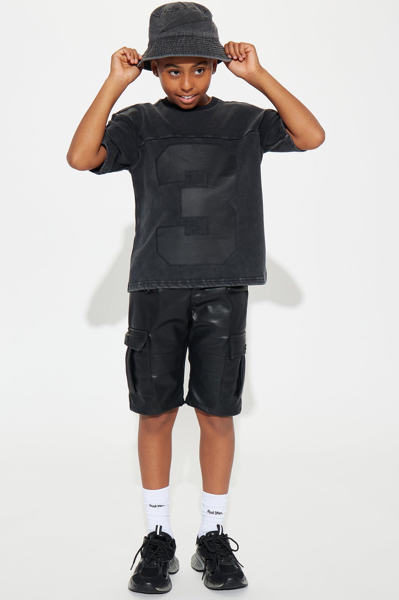 Available In Black Wash, Green, And Red. Short Sleeve Crew Neck Tee Oversized Fit Number "3" Washed 80%COTTON 20% POLYESTER Model Wears Size 10/12 Daddy & Me Takedown Of "Kyle Tee" Imported |