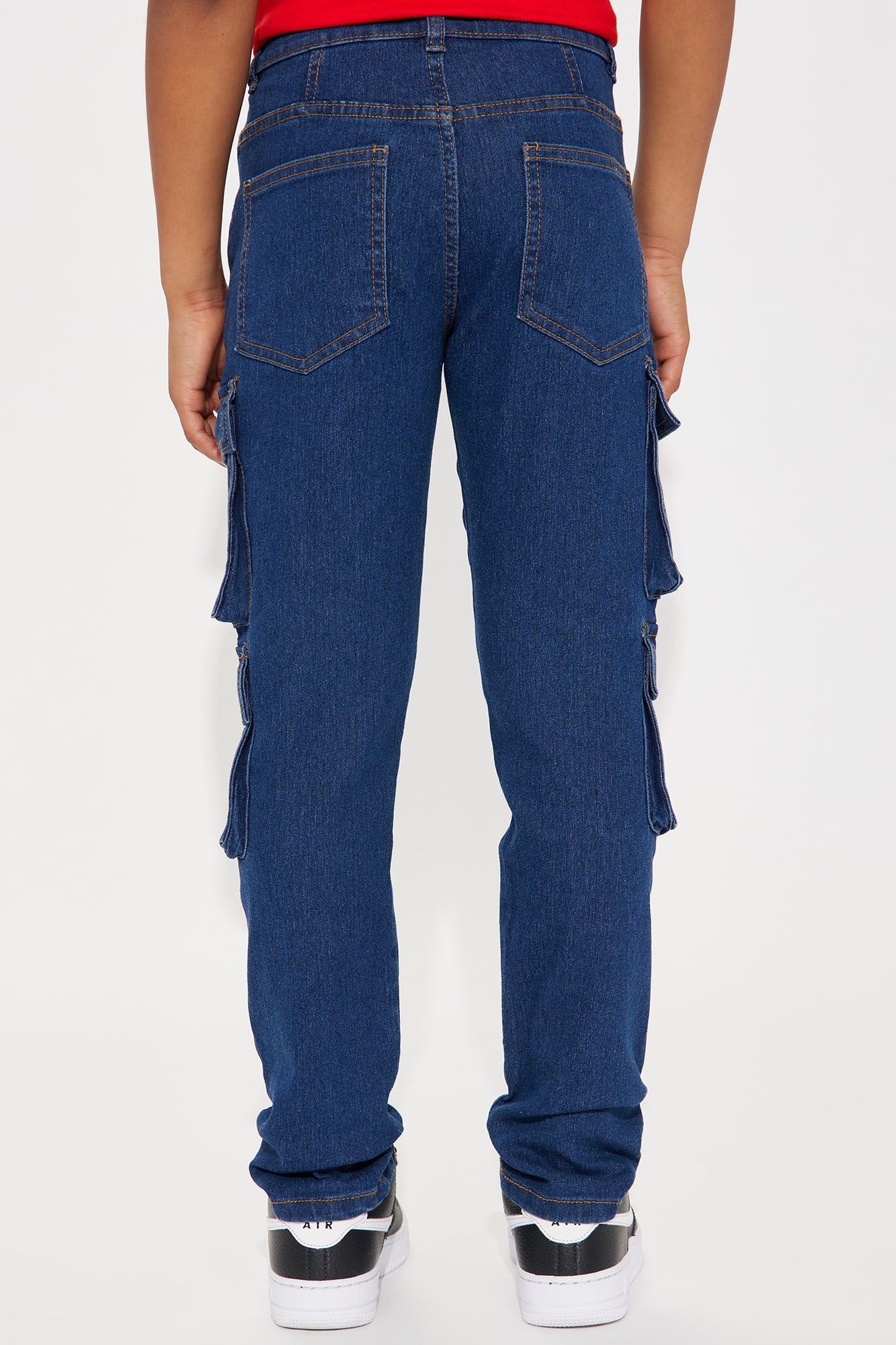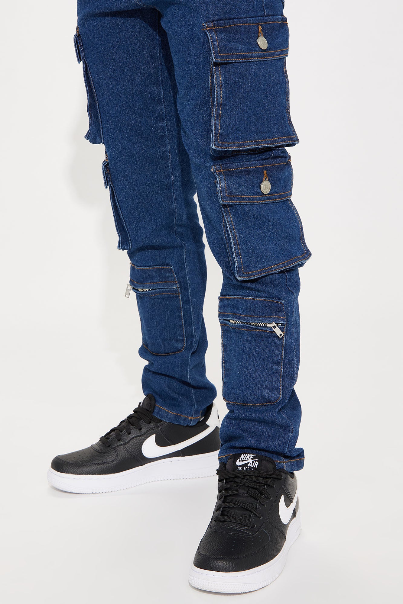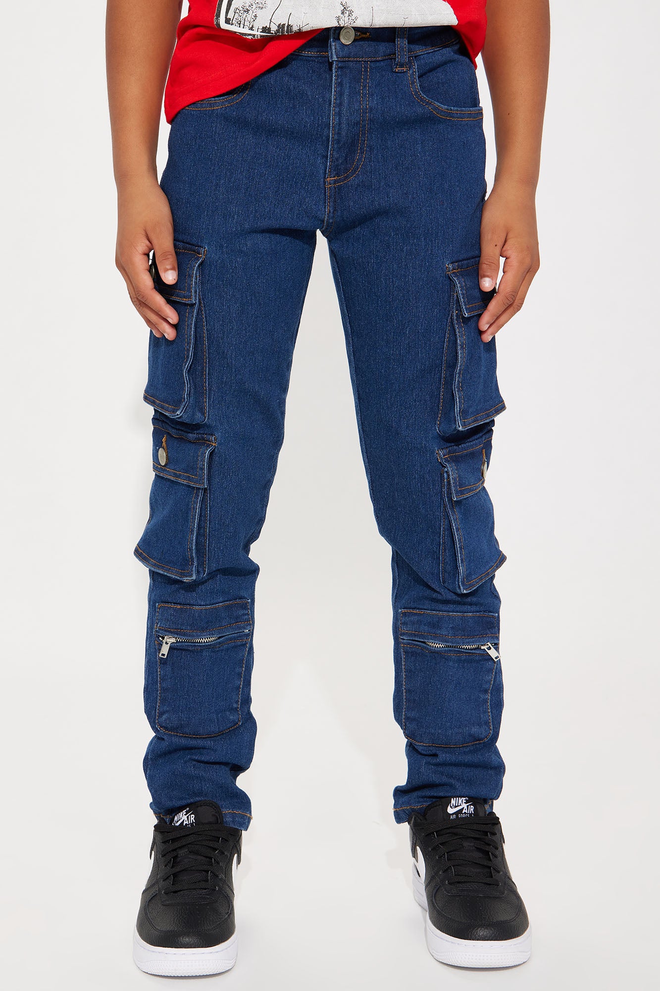 Available In Medium Blue Wash. Cargo Jeans Front Pockets Button Closure Disclaimer: Due To The Specialized Wash Process, Each Garment Is Unique. 65% Cotton 33% Polyester 2% Spandex Imported |