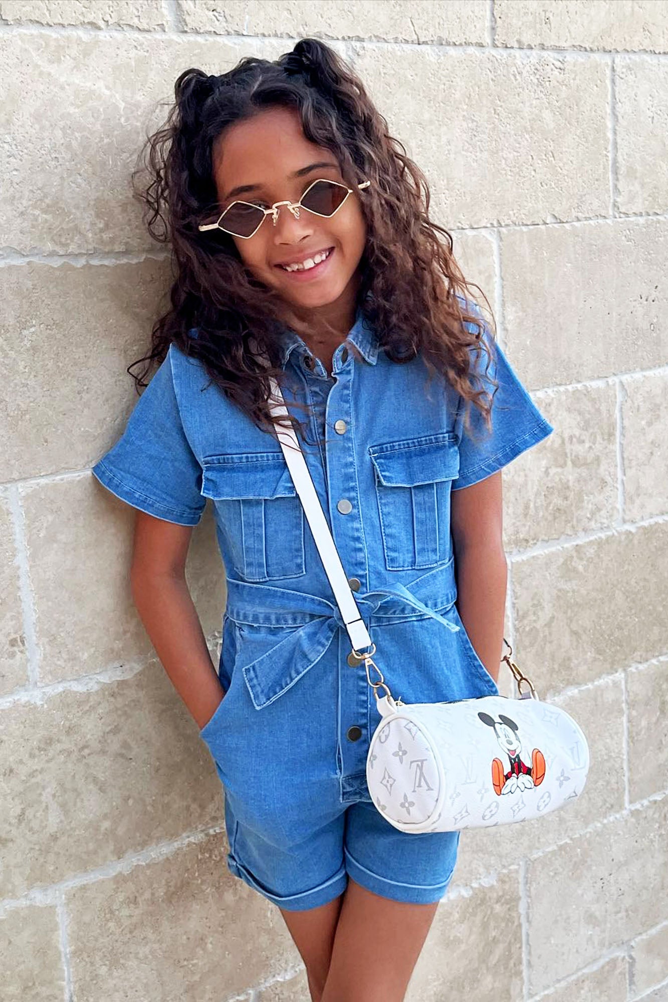 Available In Light Wash. Denim Romper Collard Flap Pockets Short Sleeve Snap Button Closure Slit Pockets Belted Cuffed Hem Back Pockets Stretch 71% Cotton, 24% Polyester, 2% Spandex, 3% Other Fibers Mommy And Me "Live A Little Danger Denim Romper" Disclaimer: Due To The Specialized Wash Process, Each Garment Is Unique. |
