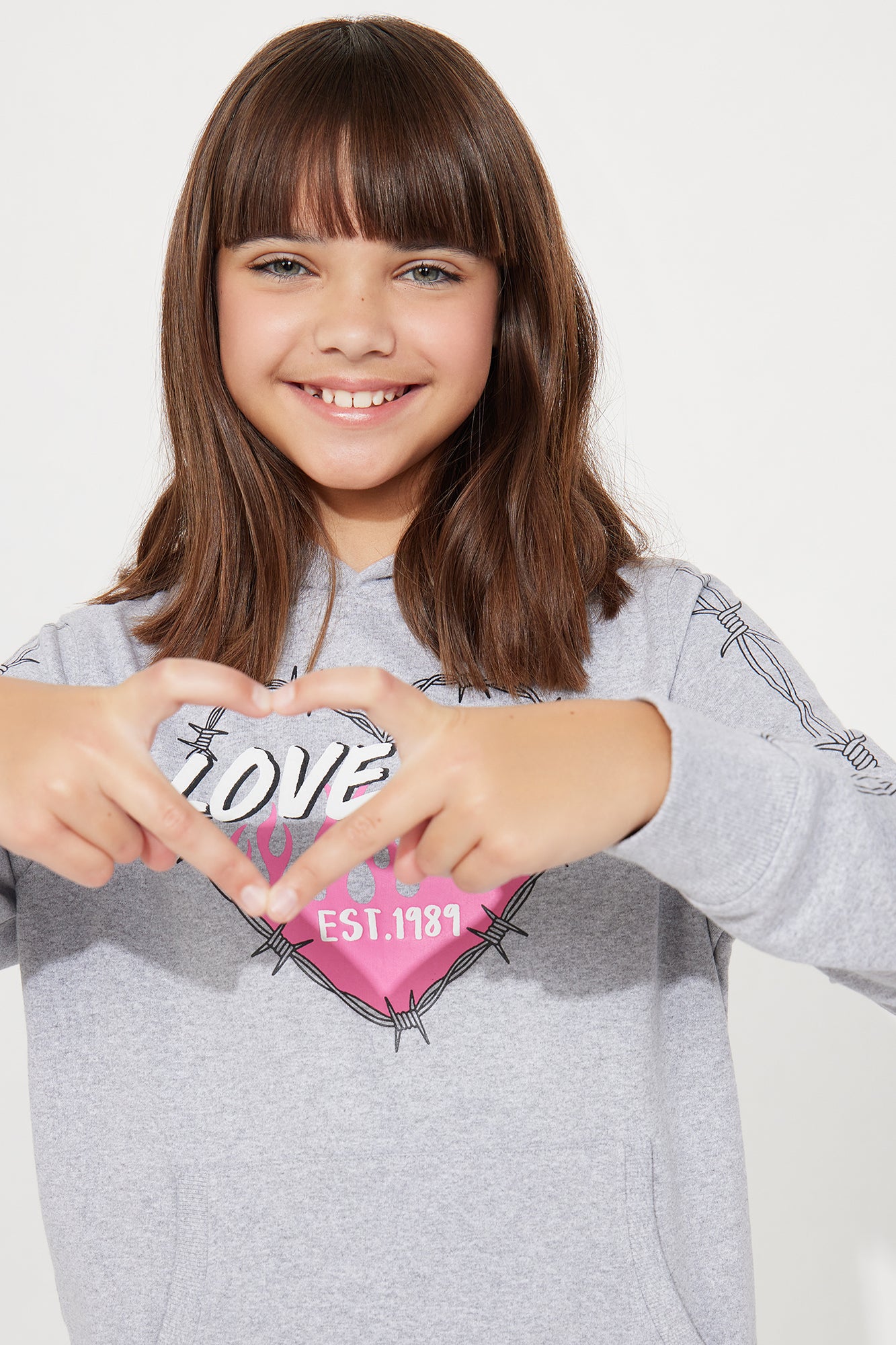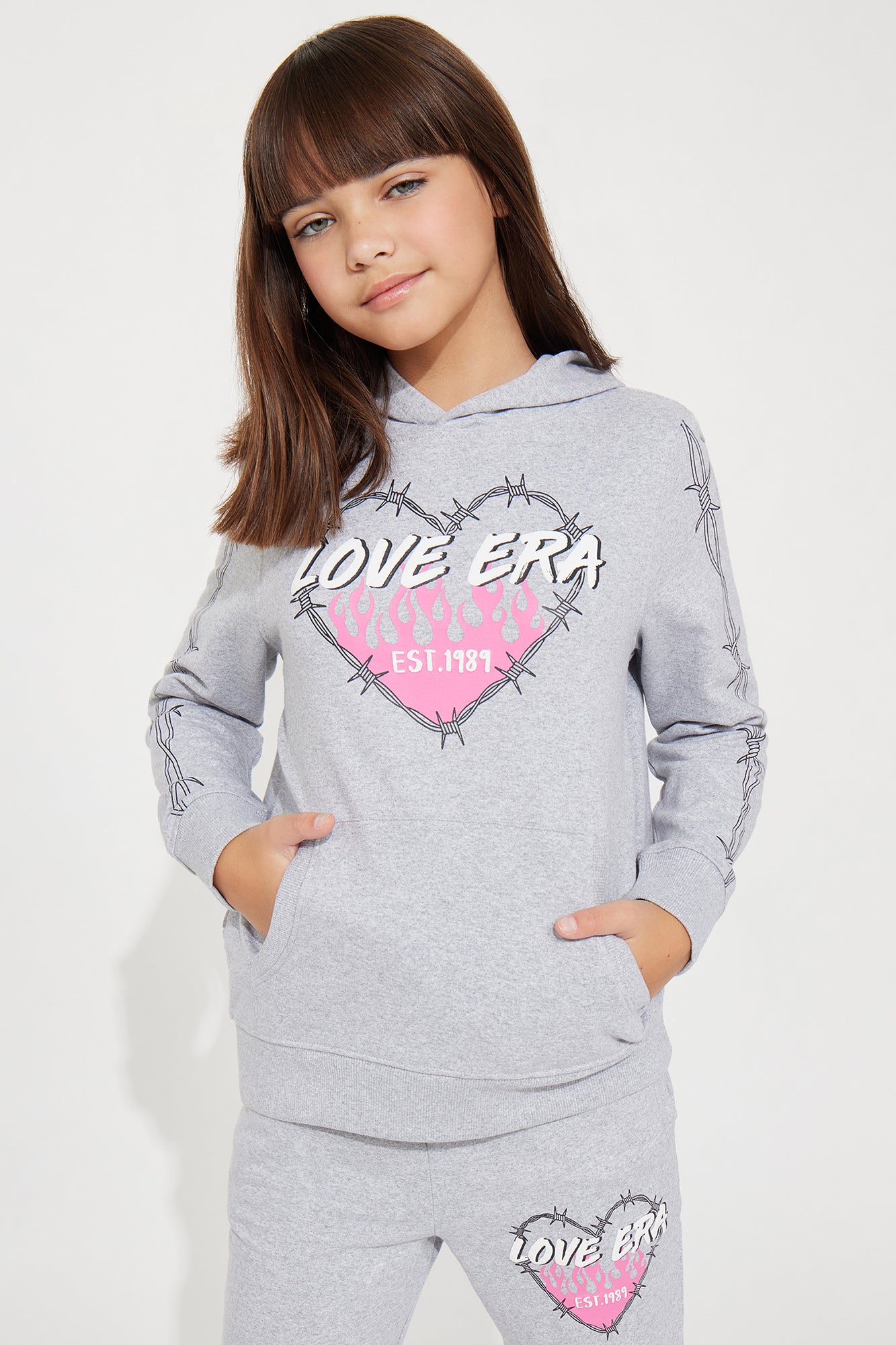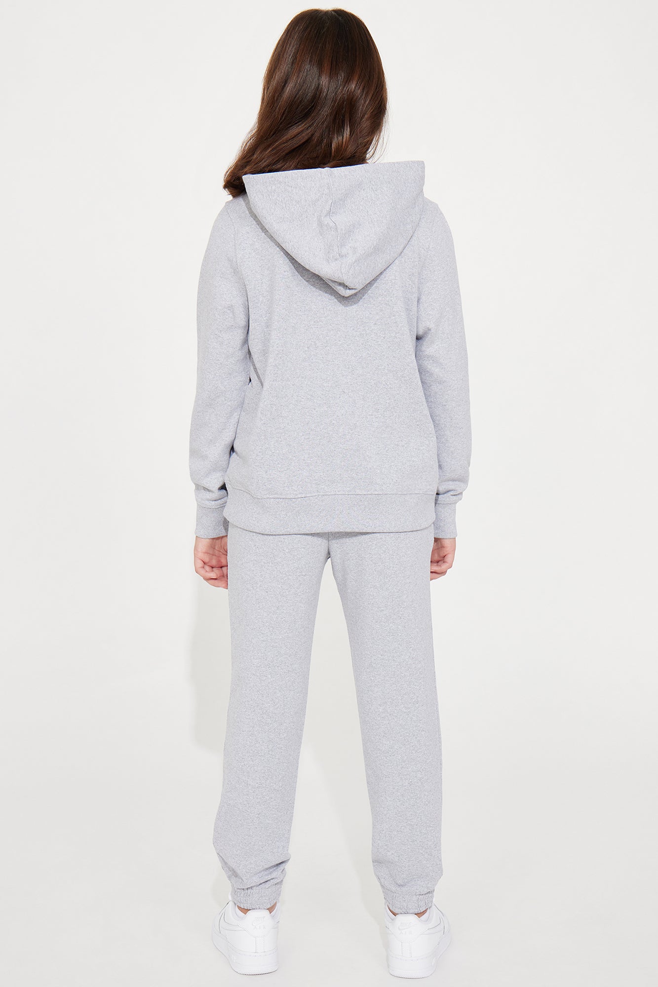 Available In Grey. Matching Pant Set Fleece Long Sleeve Hoodie Kangaroo Front Pocket Jogger Bottom Sided Pockets Recycled Cotton Blend 60% Cotton 40 Polyester Model Wears Size M XS: (4/5), S: (6/6X), M: (7/8), L: (10/12), XL: (14/16) Imported |