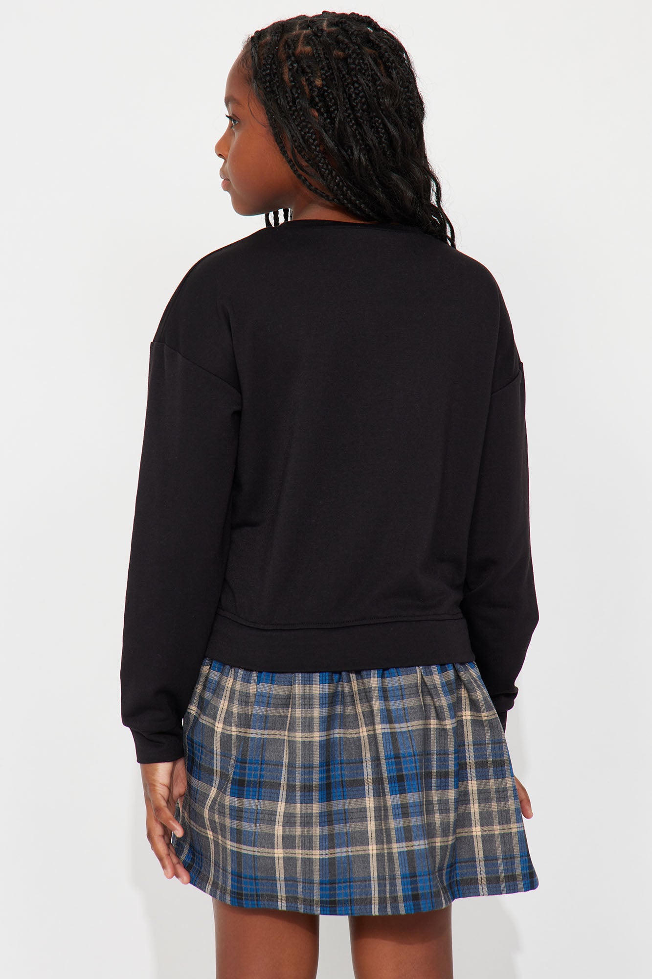 Available In Navy/combo. Mini Dress "Melrose Los Angeles" Verbiage Crewneck Long Sleeve Plaid Pleated Skirt Hem UP: 96% Polyester 4% Spandex Down: 80% Polyester 17% Rayon 3% Spandex Model Wears Size 10 Imported |