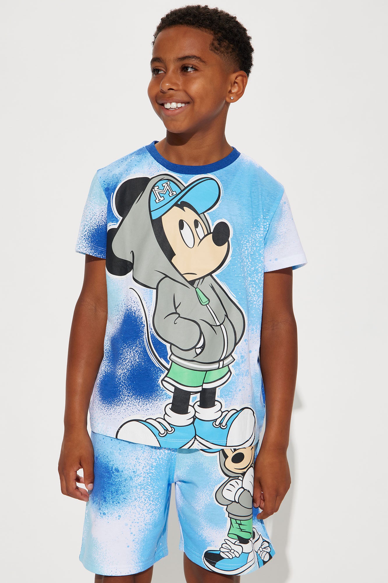Available In Multi Color. Short Set Spray Print Cotton Blend Short Sleeve Mickey Mouse Graphic Disclaimer: Due To The Printing Process A Difference In Saturation May Occur. Each Garment Is Unique.?Print Placement Will Vary. 60% Cotton 40% Polyester Imported |