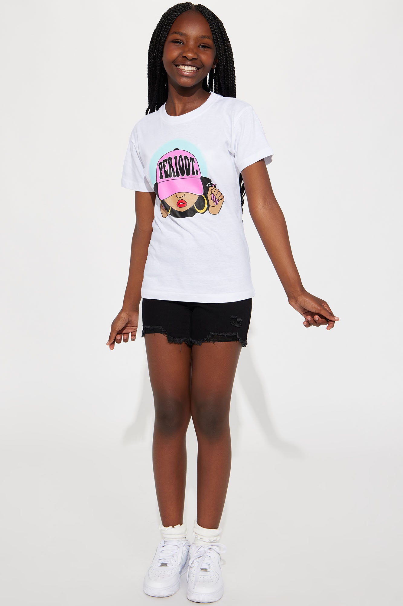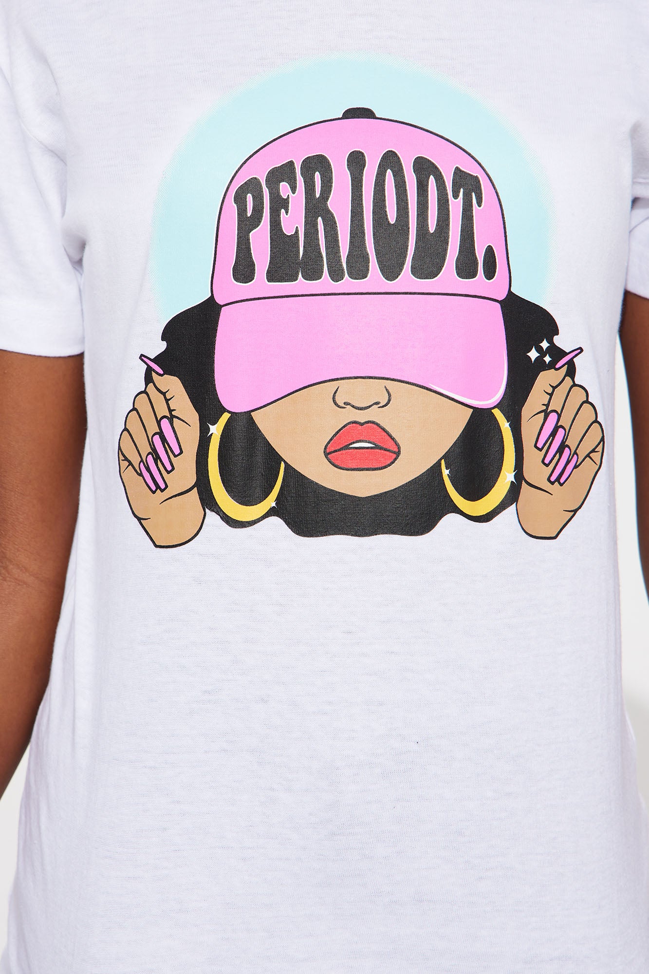 | Available In White. Screen Top Short Sleeve Non License Graphic T-Shirt "Periodt" Verbiage Disclaimer: Due To The Printing Process A Difference In Saturation May Occur. Each Garment Is Unique.? 100% Cotton Imported |
