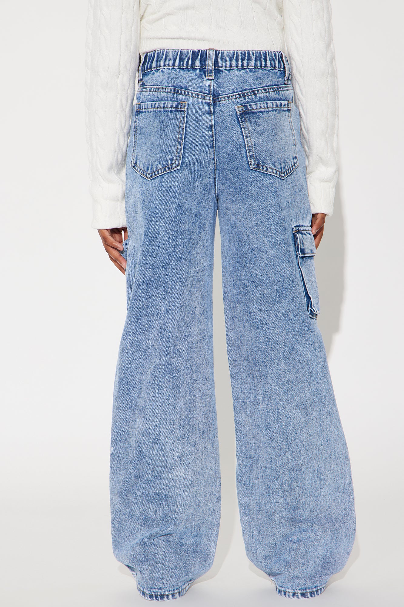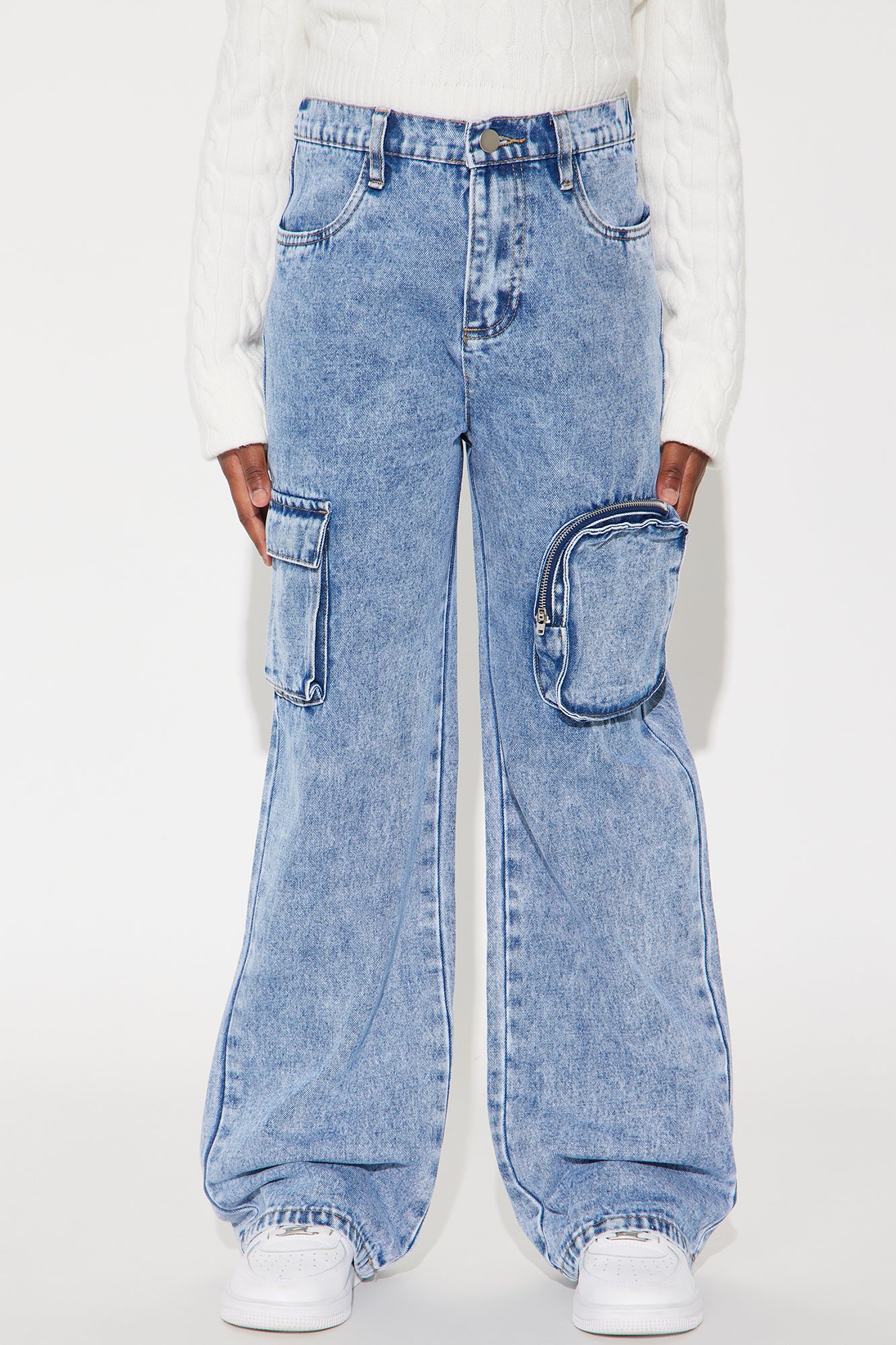 Available In Indigo. Cargo Jeans Wide Leg Non-Stretch Denim Front And Back Pockets Front Zipper with Button Closure 80% Cotton 10% Viscose 10% Polyester Model Wears Size 10/12 Pair With "Mini Quiana Denim Cargo Vest" Imported |