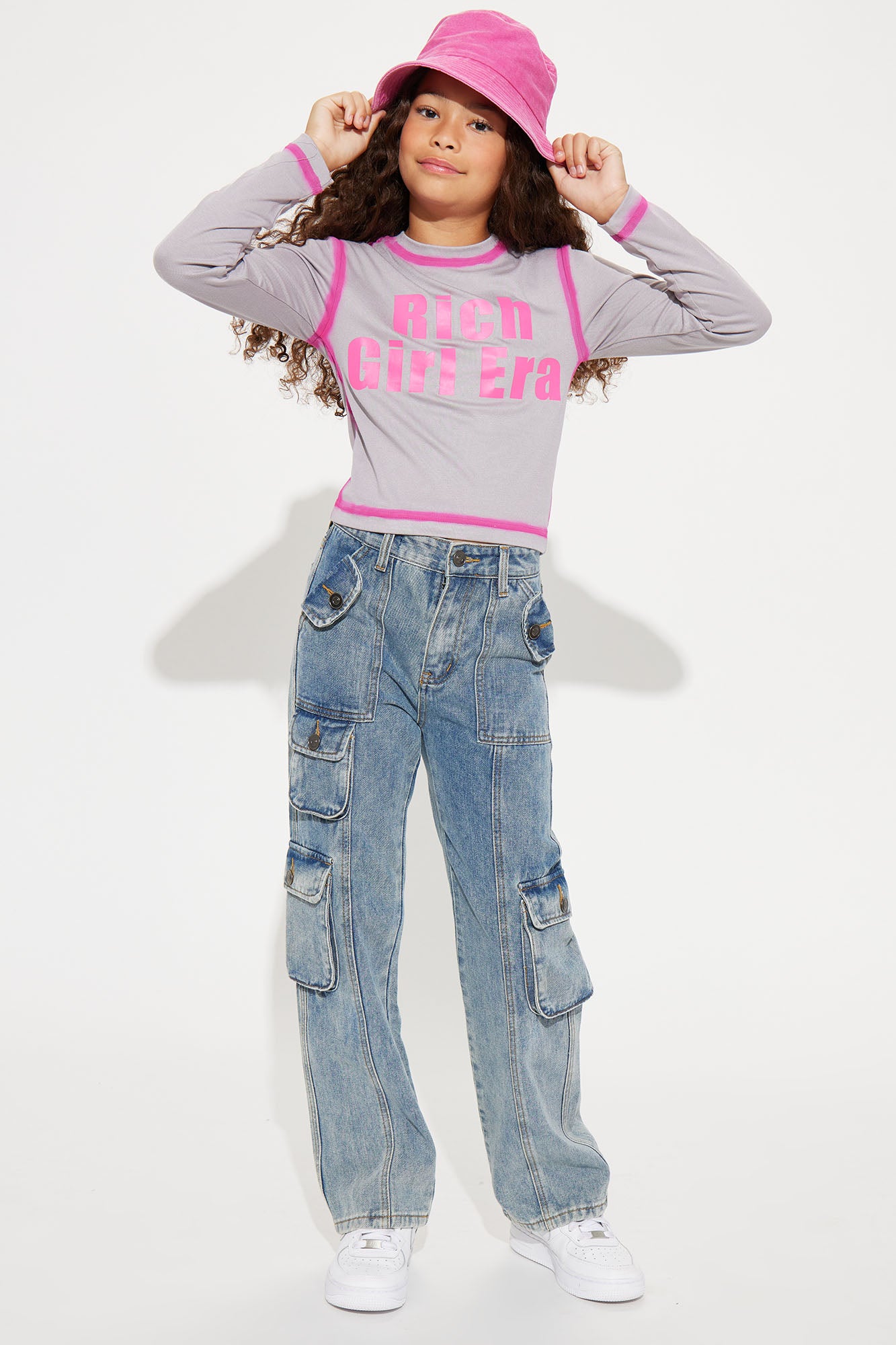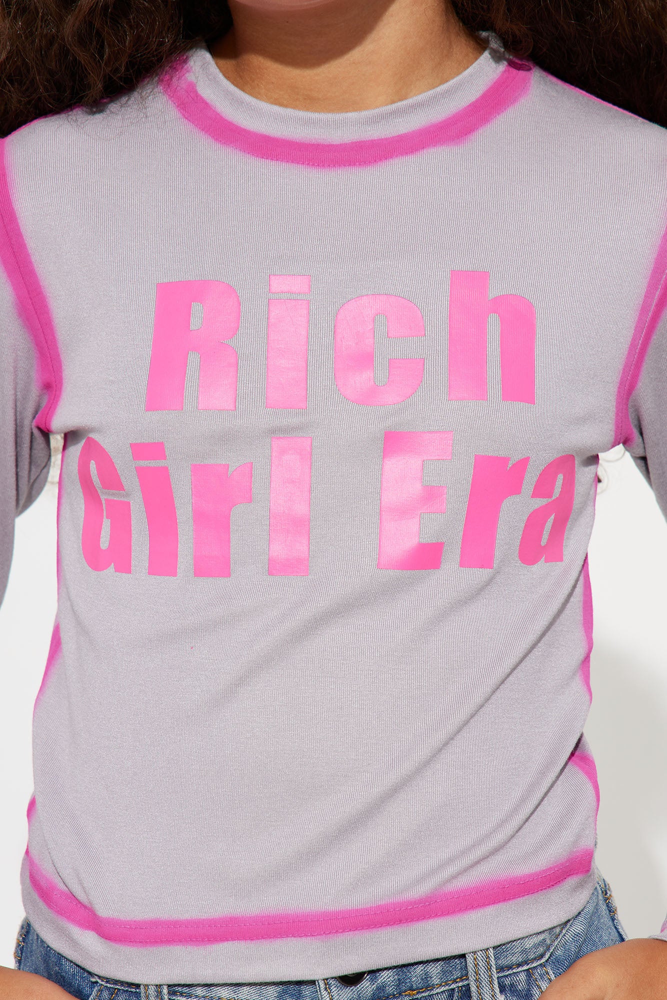 Available In Pink/combo. T-Shirt Long Sleve Crew Neck "Rich Girl Era" Verbiage Contrast Airbrush 97% Cotton 3% Elastane Model Wears Size 10/12 Imported |