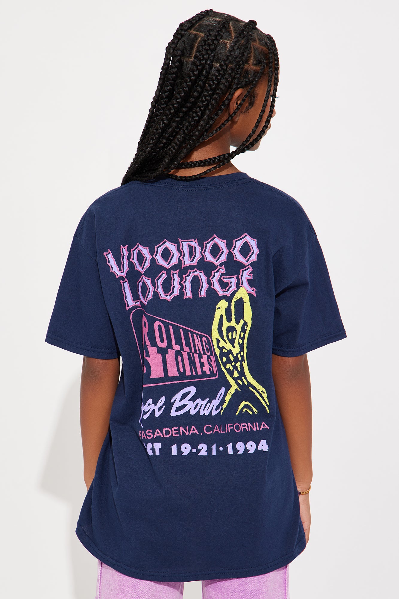 Available In Navy. T-Shirt Short Sleeve Crew Neck Front and Back Screen Rolling Stones Voodoo Lounge Graphic 100% Cotton Model Wears Size 10/12 Mommy & Me Takedown Of "Rolling Stones Voodoo Lounge Tee" Imported |
