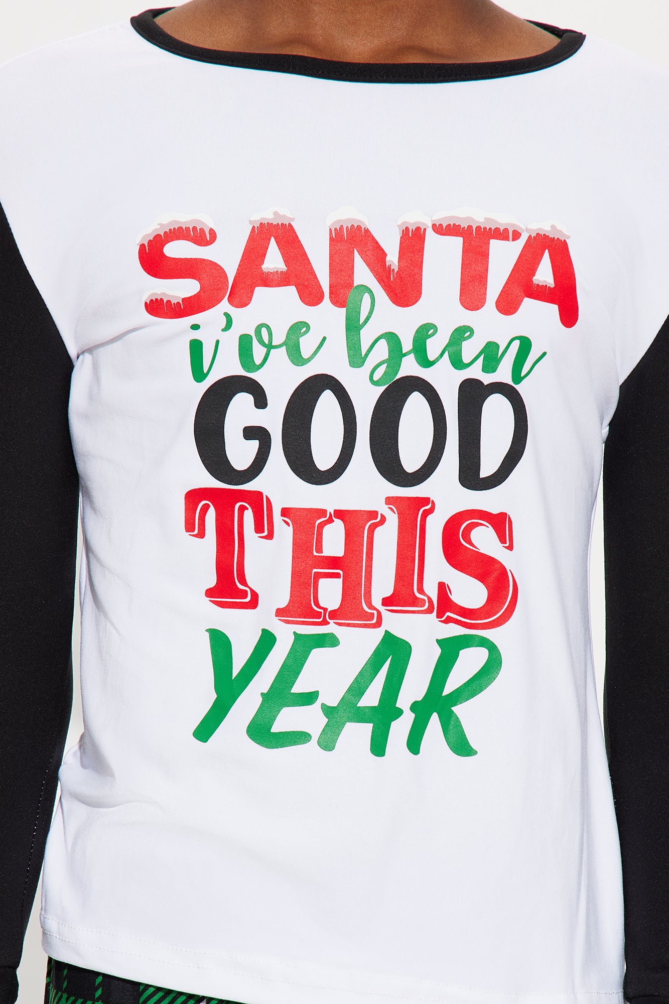 Available In White/combo. 2 Piece Matching Set Tight Fit "Santa Good This Year" Verbiage Jogger Bottom Elastic Waistband 95% Polyester 5% Spandex Model Wear Size L Takedown Of "On Santa's Nice List Matching Family PJ Jogger Set" Imported |