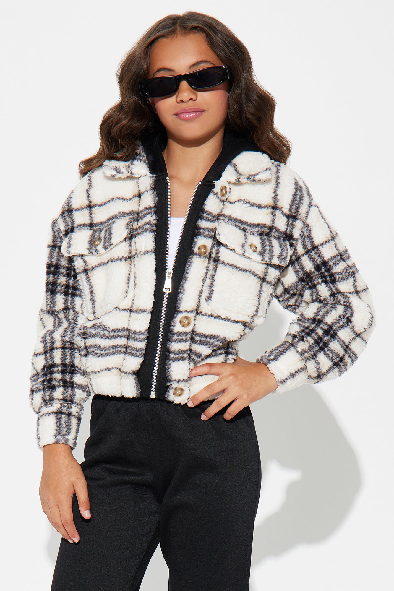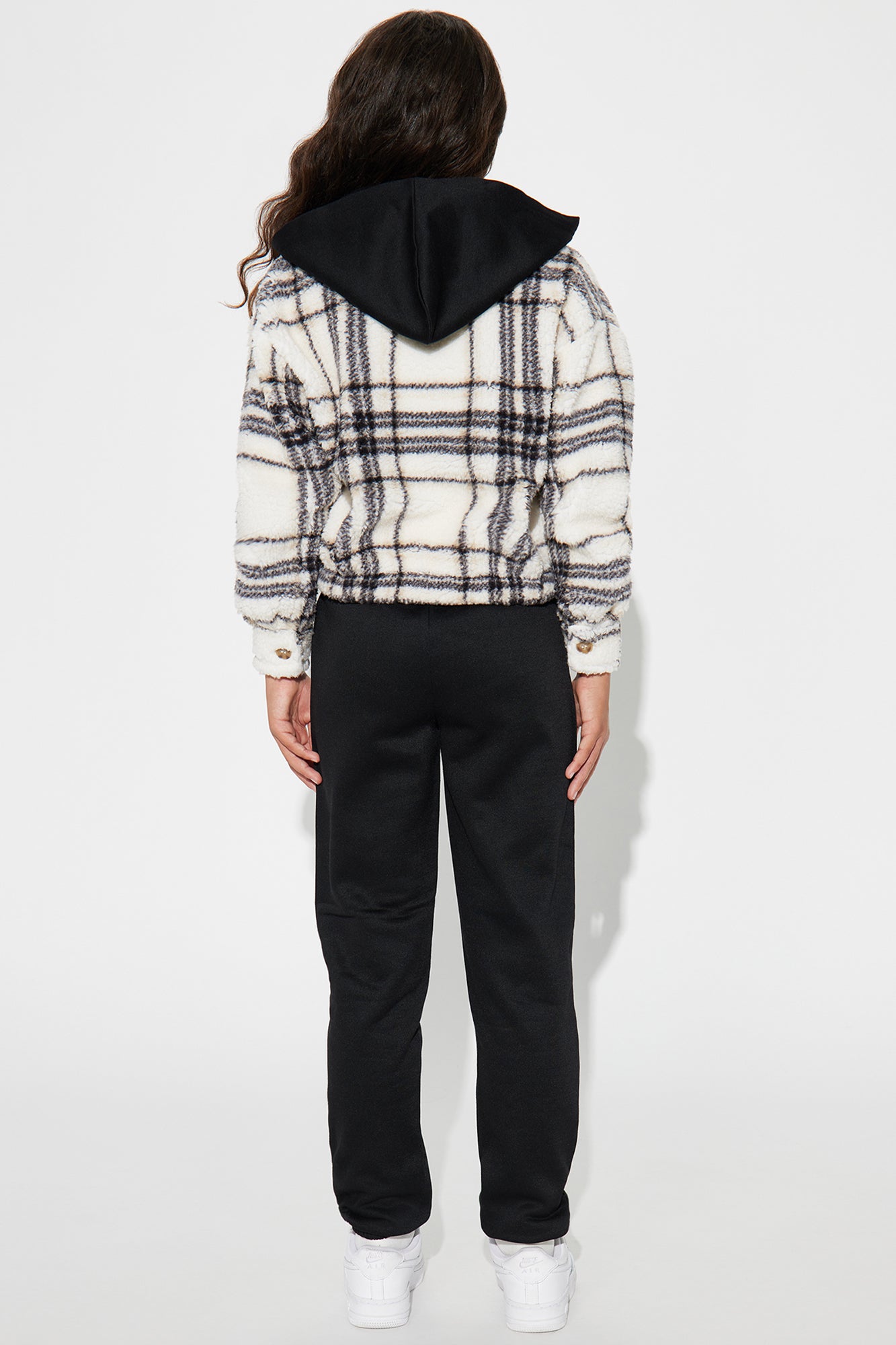 Available In Black/combo. Long Sleeve Sherpa Shacket Hooded Button Front Zip Front Elastic Waistband Jogger Bottom Model Wears Size 10/12 Mommy & Me Takedown Of "Amy Sherpa Pant Set" Top : 100% Polyester Bottom: 100% Polyester Imported |