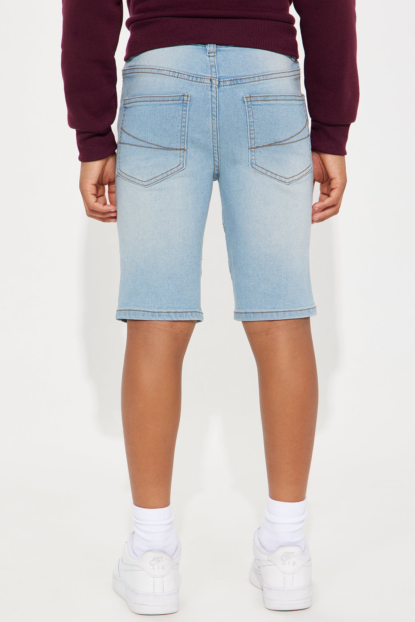 Available In Light Wash. Denim Shorts Distressed Splatter Moto Button Closure Disclaimer: Due To The Specialized Wash, Dye, & Distressing Process, Each Garment Is Unique. 65% Cotton 33% Polyester 2% Spandex Imported |