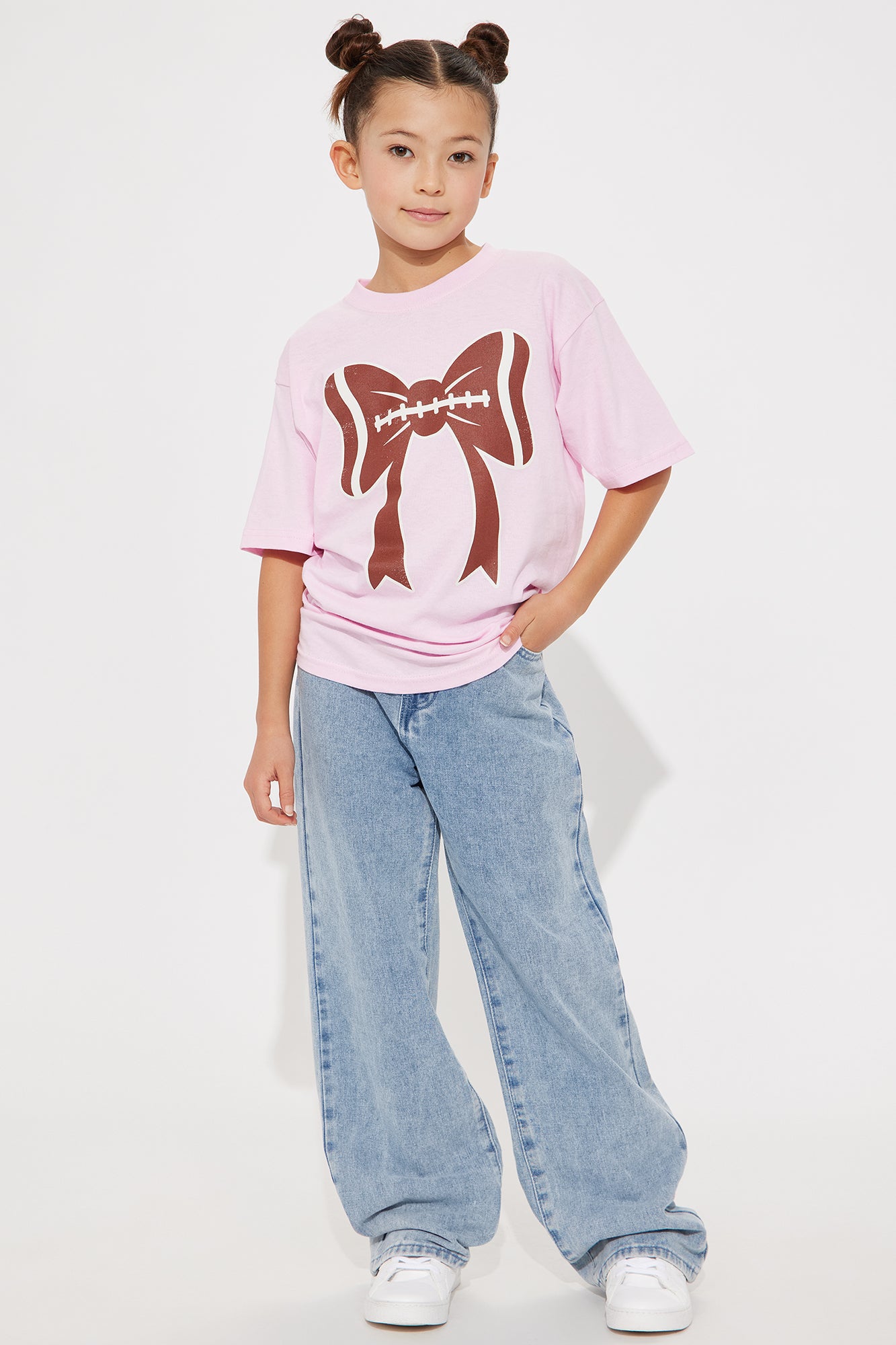 Available In Light Wash. Wide Leg Jean Embroidered Bow Detail Non-Stretch 5 Pocket Detail Model Wears Size 10/12 70% Cotton 16% Polyester 14% Rayon Mommy & Me Takedown Of "Taking A Bow Embroidered Baggy Jeans" Imported |