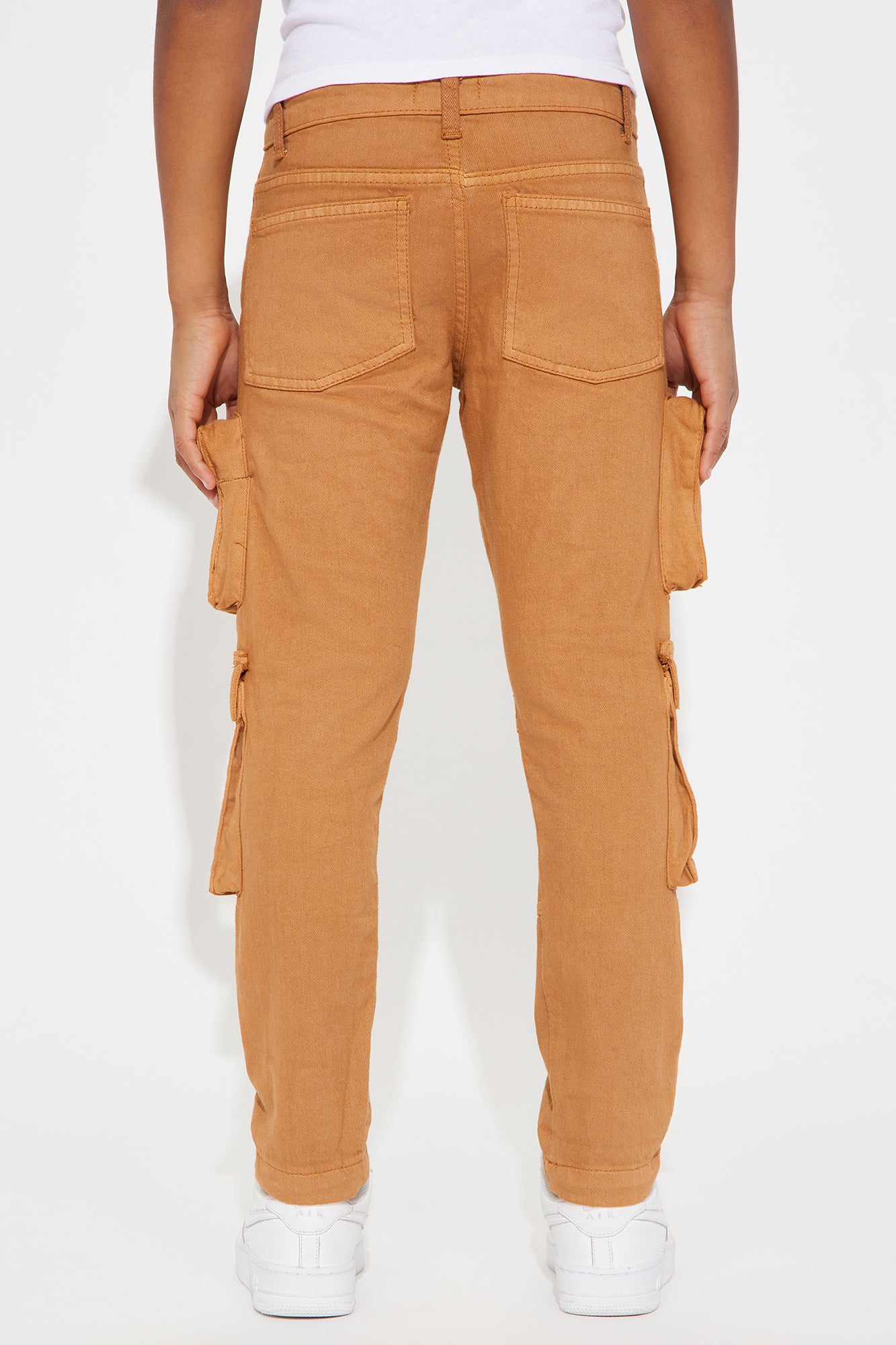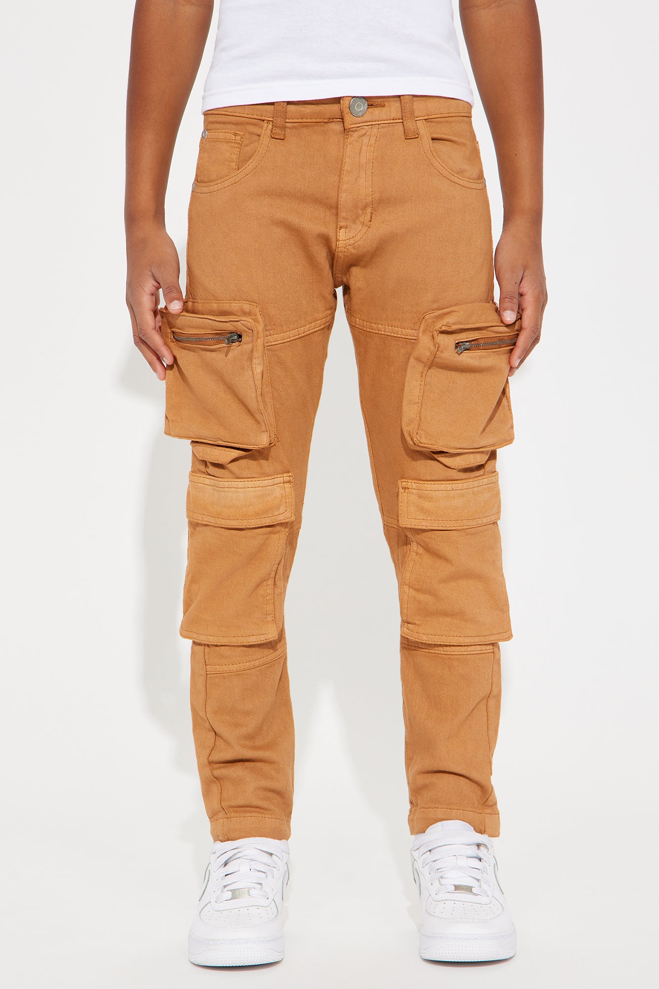 Available In Brown. Skinny Cargo Denim Jean Cargo Pockets Button With Zipper Closure Zipper Detail on Cargo Pockets 5 Pocket Detail 71% Cotton, 27% Polyester, 2% Spandex Model Wears Size 10 Imported |