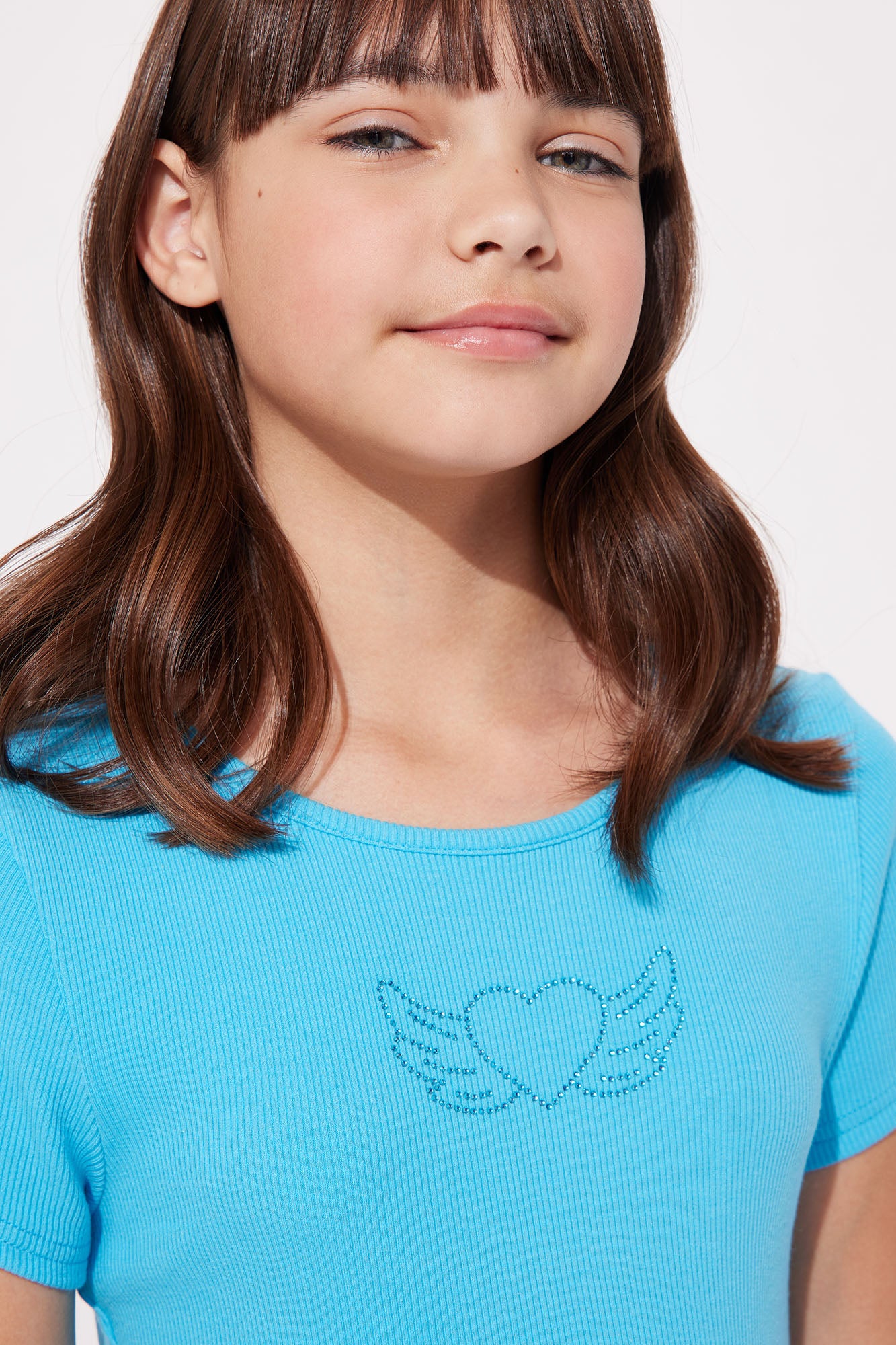 | Available In Hot Pink, Green, And Turquoise. Mini Dress Short Sleeve Rhinestone Applique Model Wears Size 10/12 95% Cotton 5% Spandex Imported |