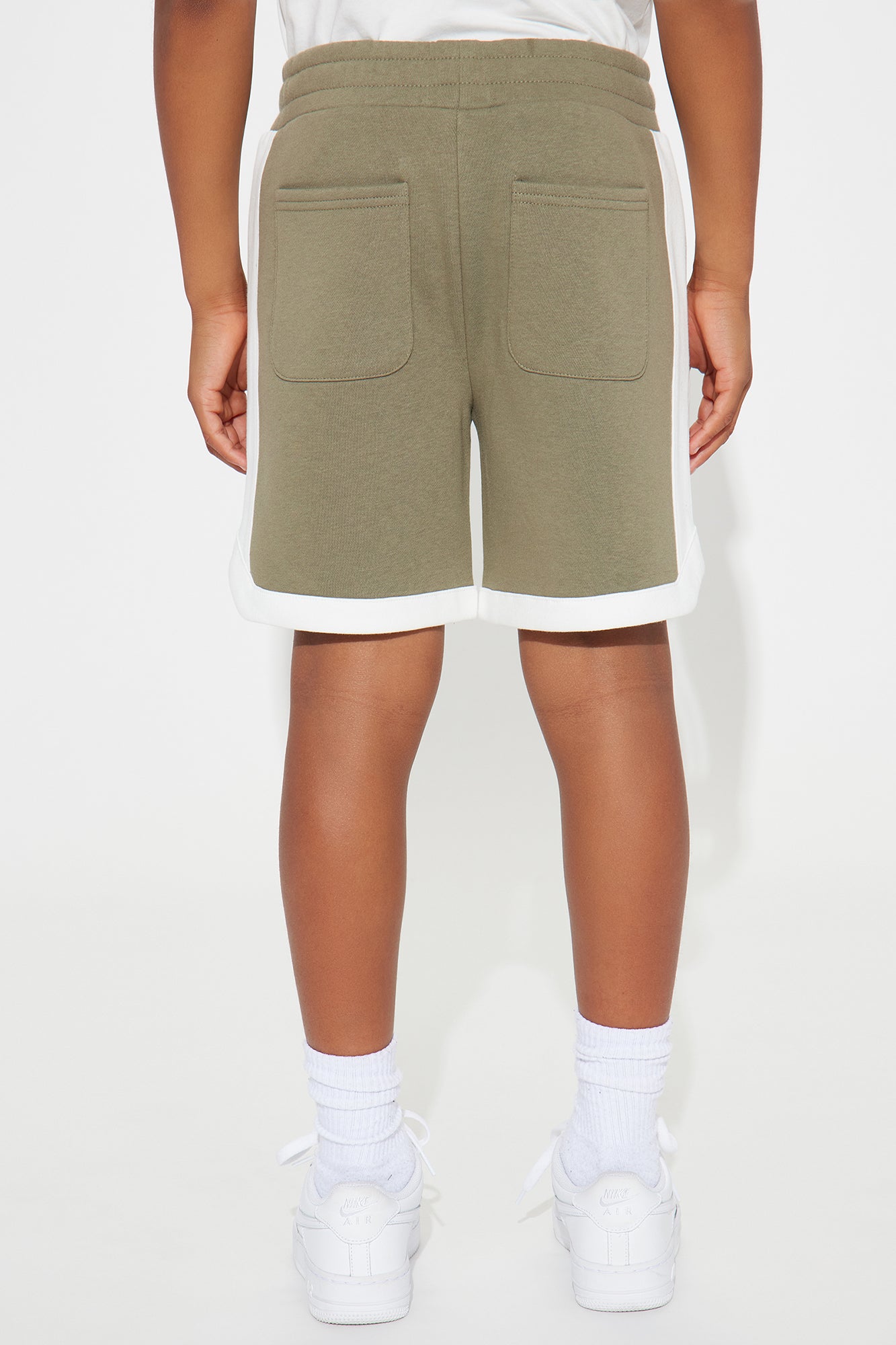 Available In Black And Olive. Fleece Short Elastic Waistband Side Pockets Screen Print Model Wears Size 10/12 Daddy & Me Takedown Of "Tyson Contrast Warm Up Shorts" 60% Cotton 40% Polyester Imported |
