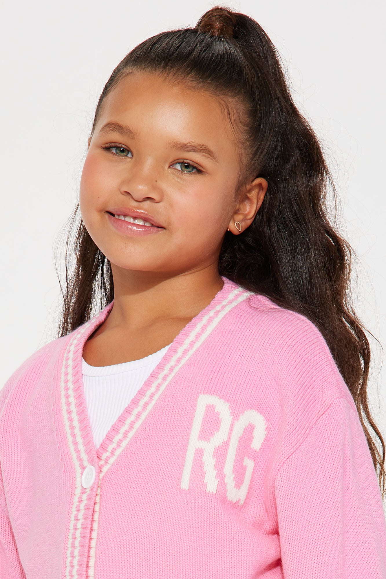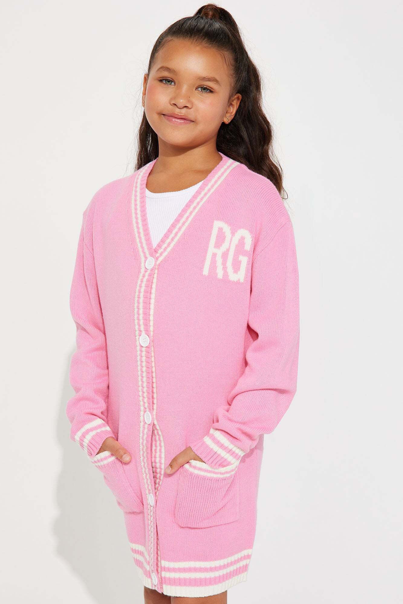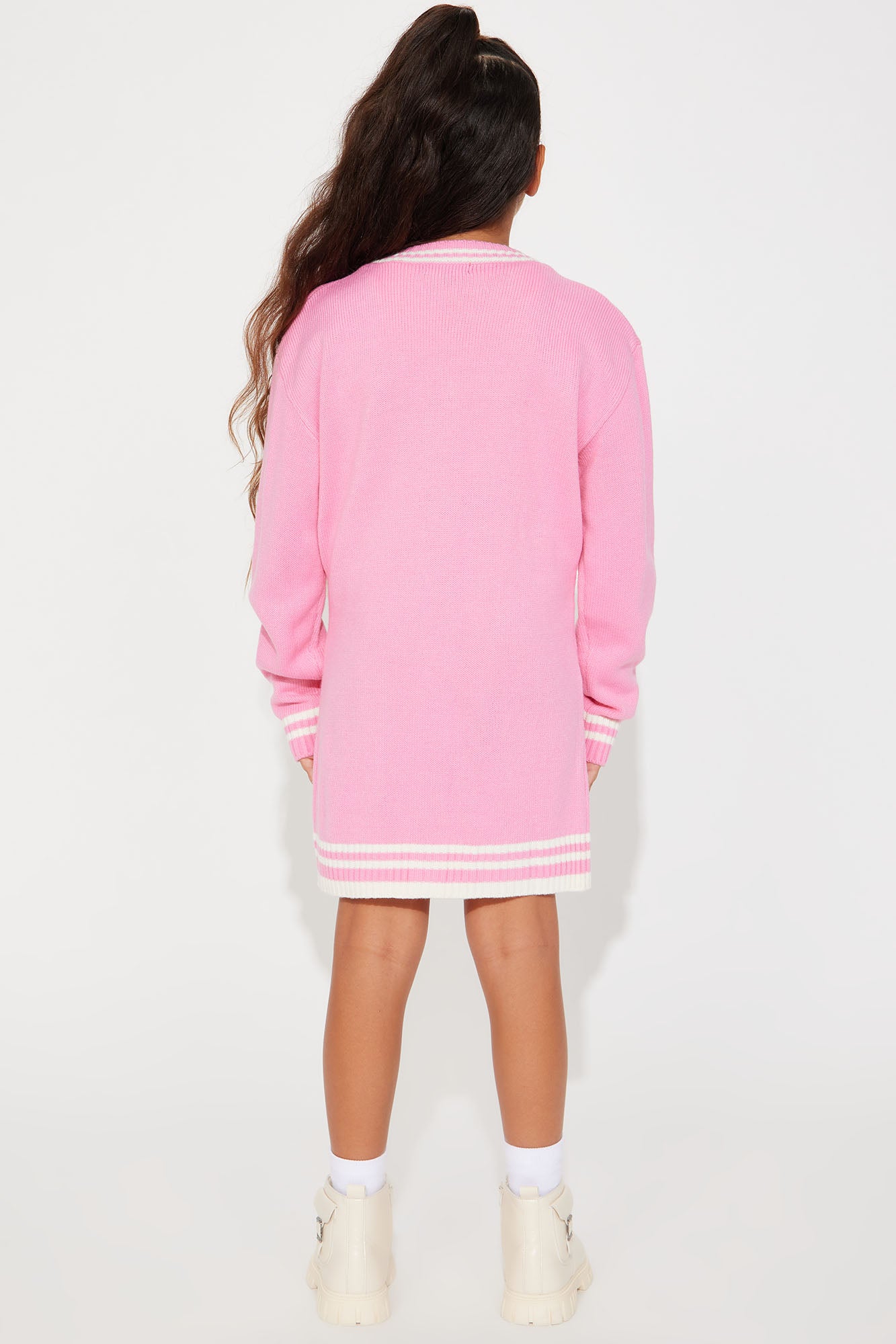 Available In Pink/combo. Sweater Mini Dress Long Sleeves Button Front Contrast Trim Pockets Stretch 100% acrylic Model Wears Size 10/12 Mommy & Me Takedown of "Varsity Moment Mini Dress" Imported |