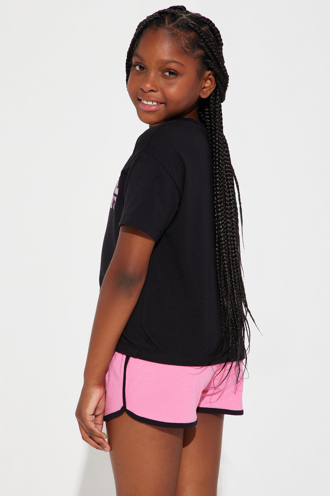 Available In Black/combo. Short Sleeve Short Set "Spoil Me I'm Worth It" Verbiage Elastic Waist Crew Neck Model Wears Size 10/12 Disclaimer: Due To The Printing Process A Difference In Saturation May Occur. Each Garment Is Unique. 50% Cotton 45% Polyester 5% Spandex Imported |