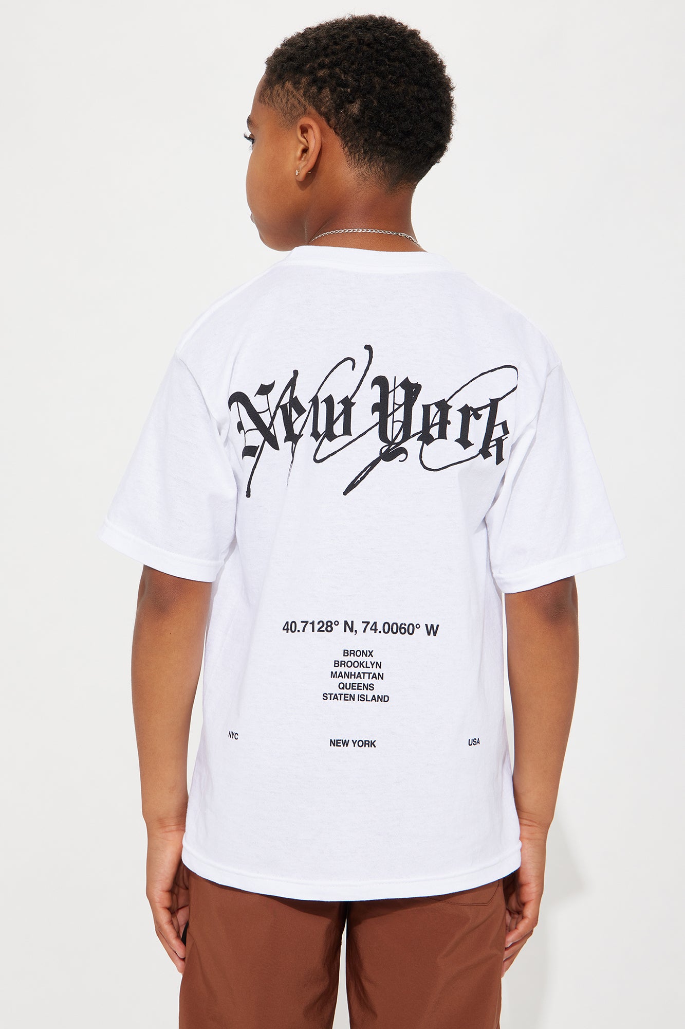 Available In White. Crew Neck Short Sleeve Front & Back Screen Model Wears Size M Daddy & Me Takedown of "New York Script Tee " S=7/8, M=10/12, L=14, XL= 16 Disclaimer: Due To The Printing Process A Difference In Saturation May Occur. Each Garment Is Unique. 100% Cotton Imported |