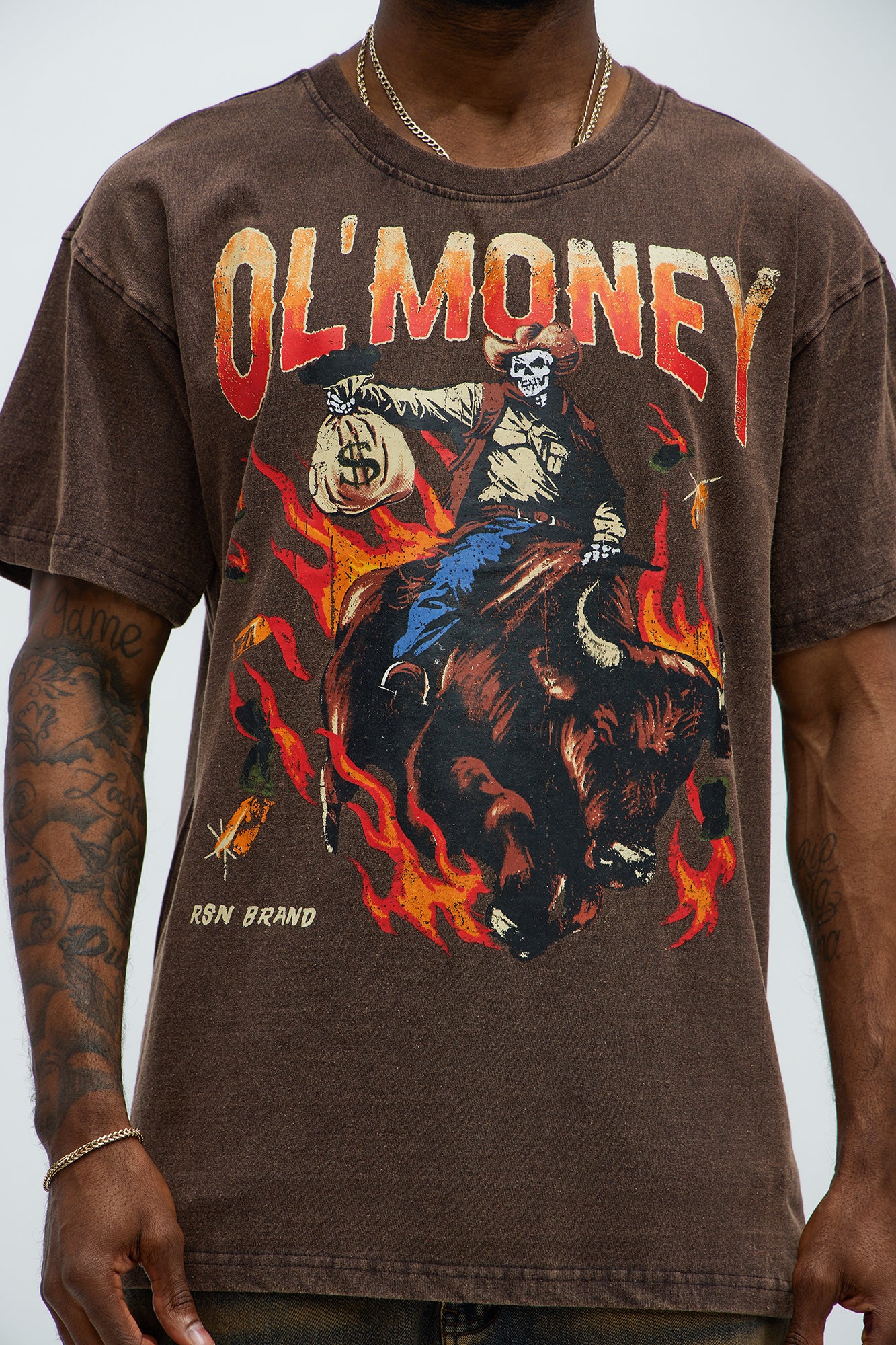 Available In Brown. Crew Neck Short Sleeve Screen Print 60% Cotton, 40% Polyester Disclaimer: This is hand made tie dye garment, each piece is unique. Wash seperately with like colors in cold water Imported |