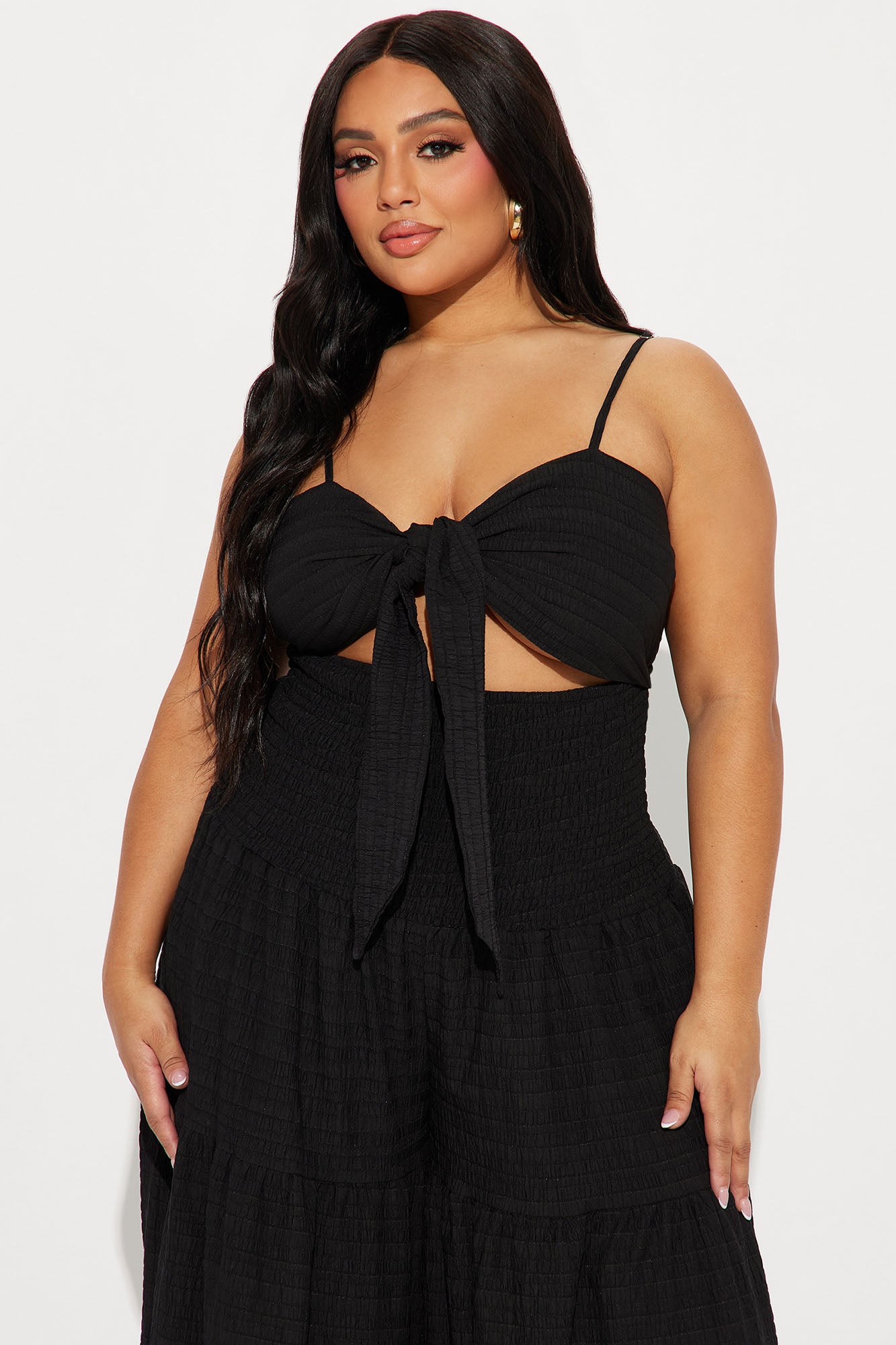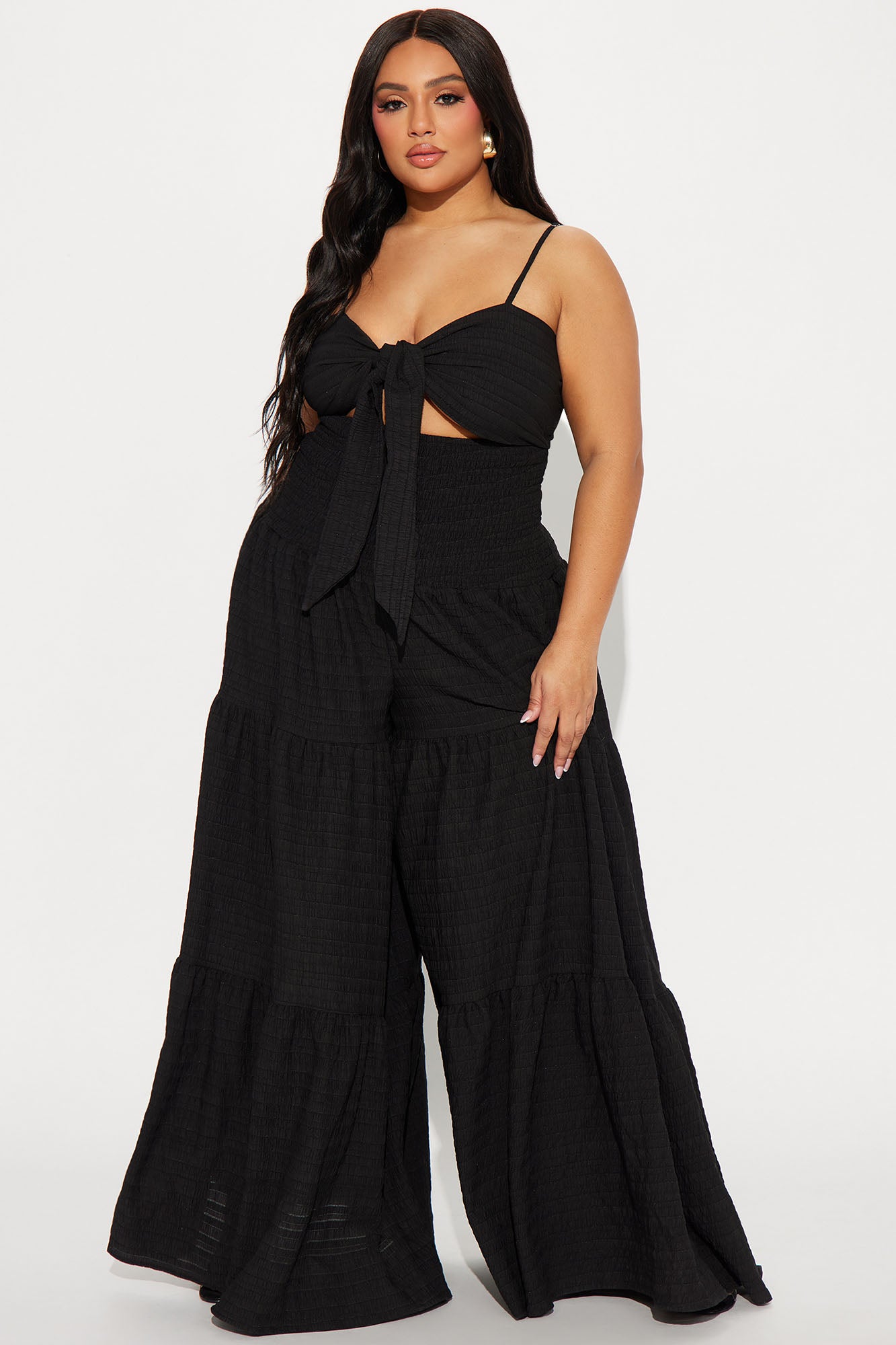Stay cool and chic in our new Montego Bay Jumpsuit! With its sleek black color, fun spaghetti straps, and sweetheart neckline, this jumpsuit is perfect for any occasion. The cut out detail and knot at the waist add a touch of flair, while the wide leg and full length shape give a flattering fit. Perfect for a day out with friends or a night on the town, this jumpsuit is sure to turn heads. Available In Black And Orange. Jumpsuit Adjustable Spaghetti Straps Sweetheart Neckline Cut Out Smocked Detail Extreme Wide Leg Non Stretch Inseam= 33" Self: 58% Rayon , 38% Polyester , 4% Spandex Lining: 100% Polyester Imported |