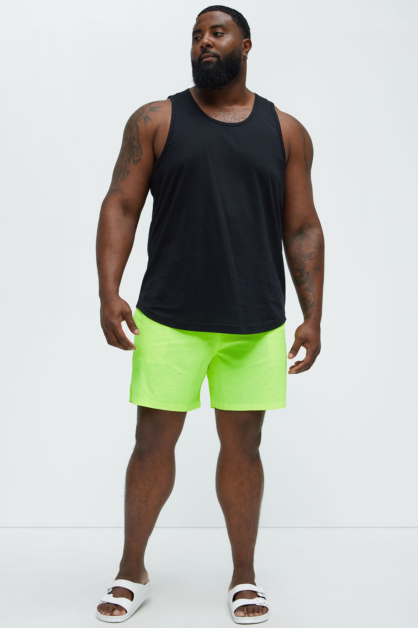 Available In Blue, Neon Pink, Neon Yellow, Orange, Pink, Purple, Black, Red, Navy, Light Blue, Pink Pink, Mint, And Yellow 7" Inseam Elastic Waist Drawstring Mesh Lined Side Hand Pockets Back Pocket With Velcro Closure 92% Nylon, 8% Spandex Lining: 100% Nylon Final Sale Disclaimer: Plus Only- Runs Small, Shop One Size Up Imported |