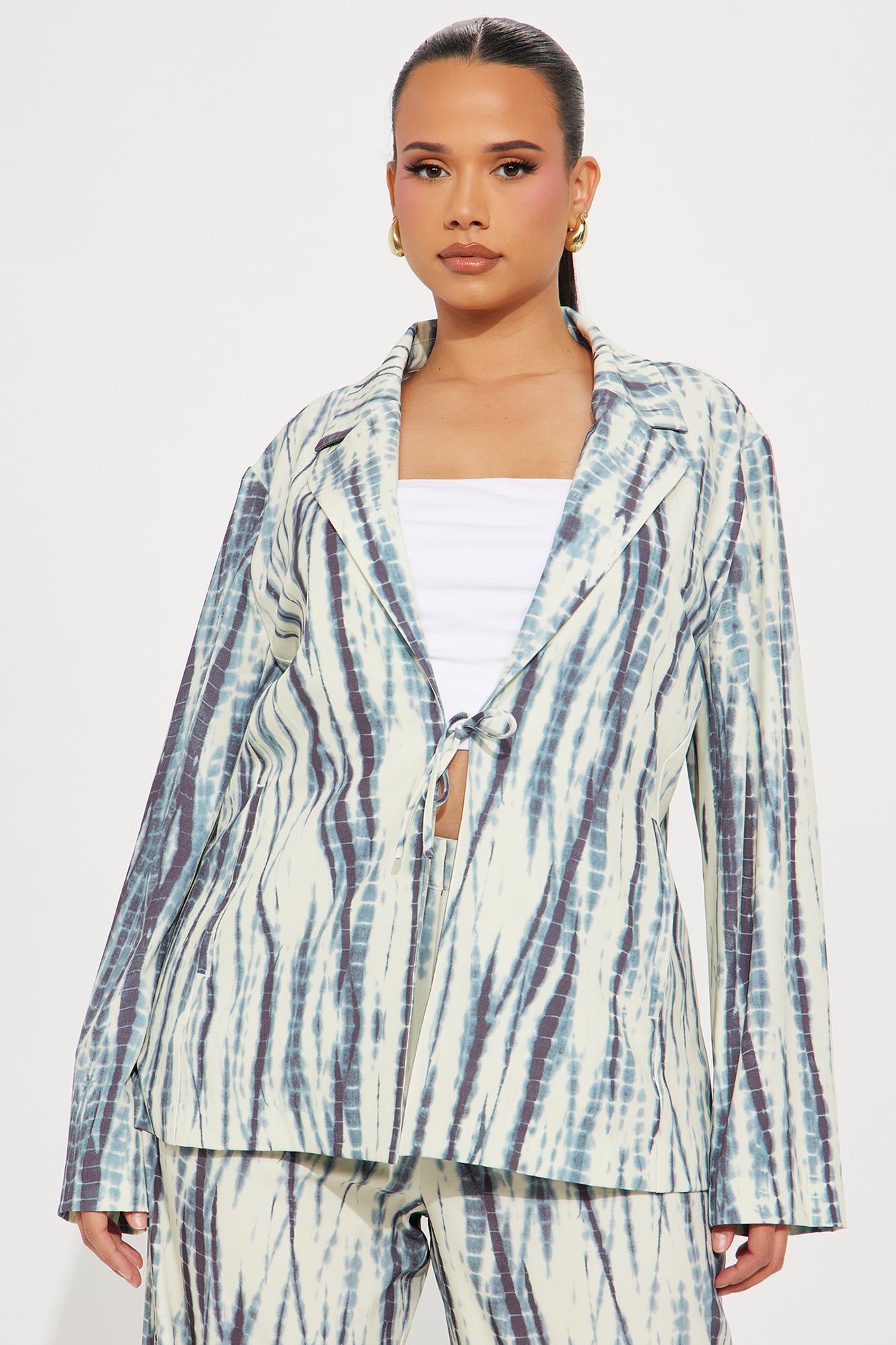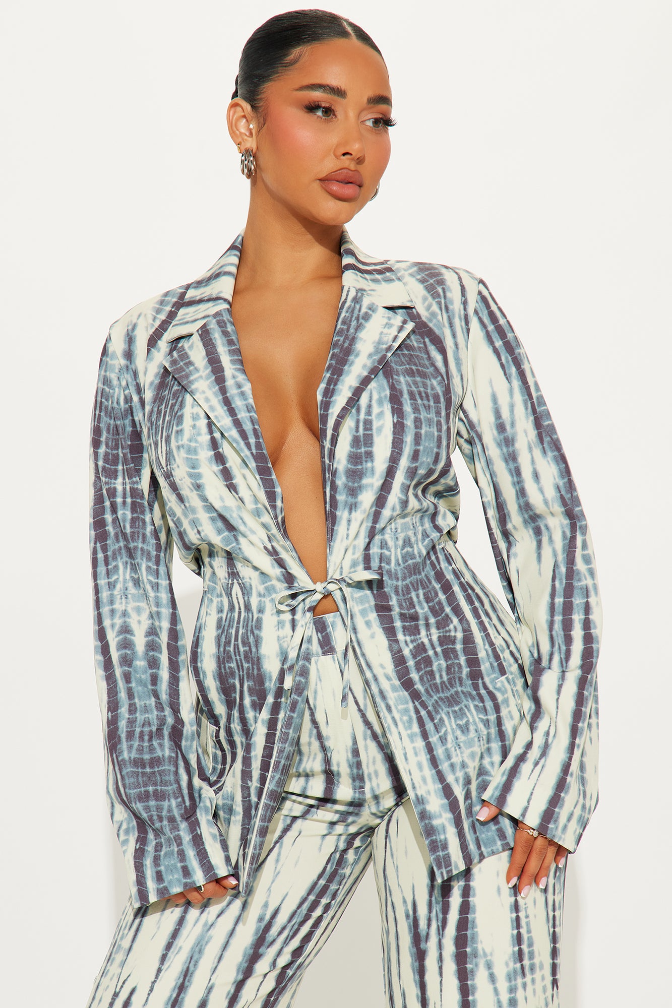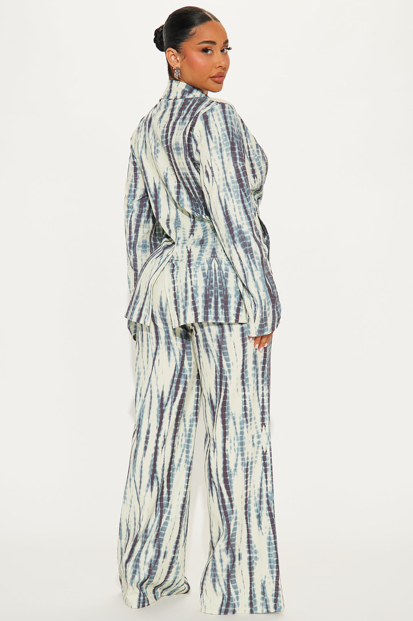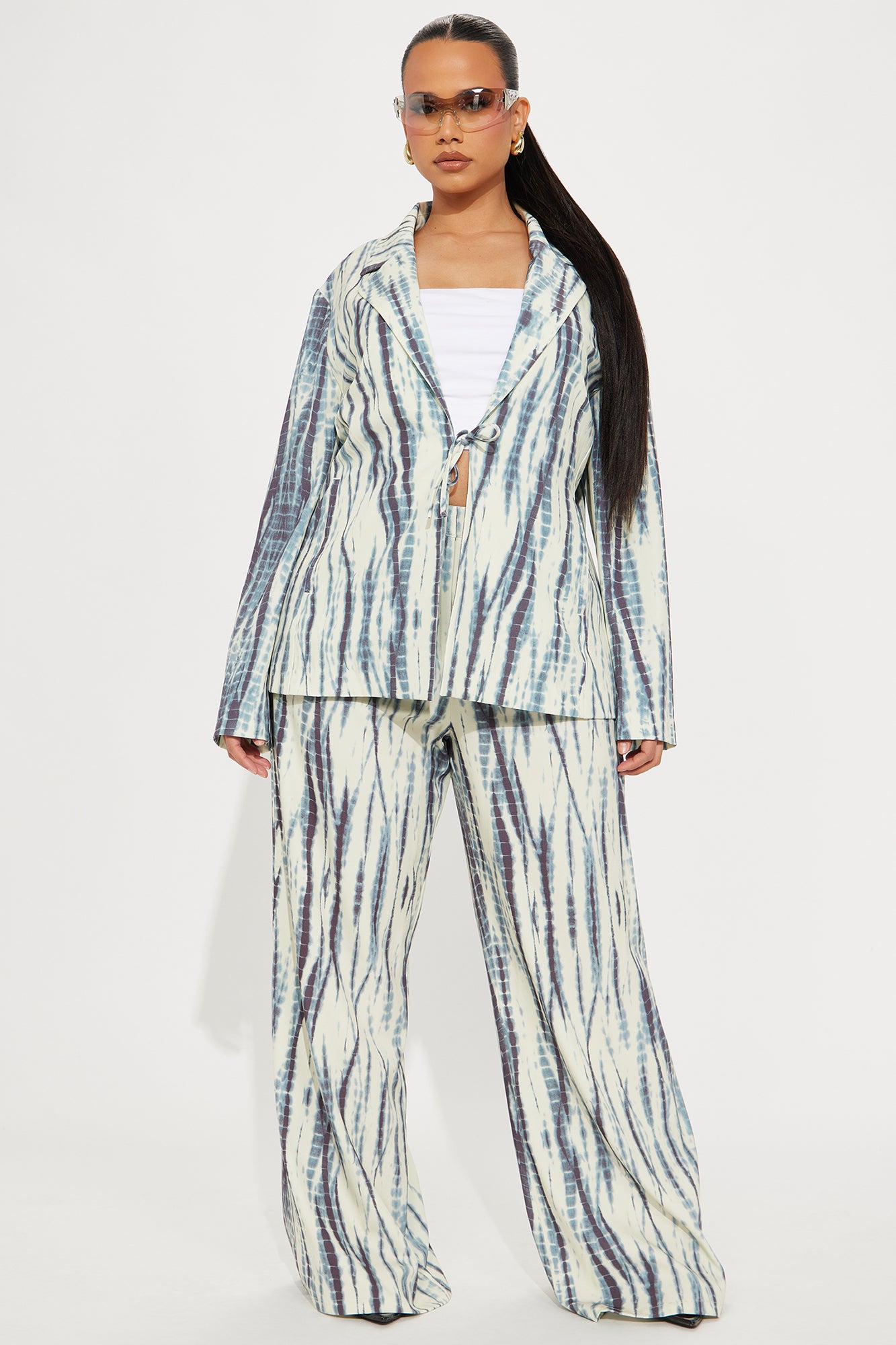 Available In Blue/combo. Blazer Top And Wide Pant Set Moderate Stretch Regular 33" Inseam Zipper And Clasp Pant Closure Shell: 92% Polyester, 8% Spandex Imported |