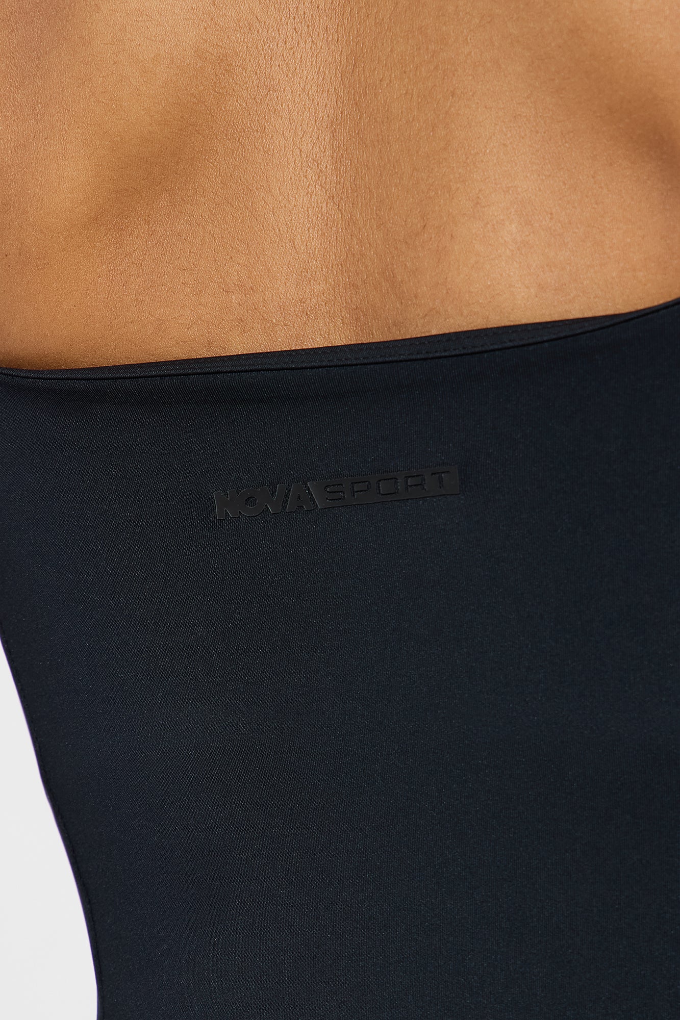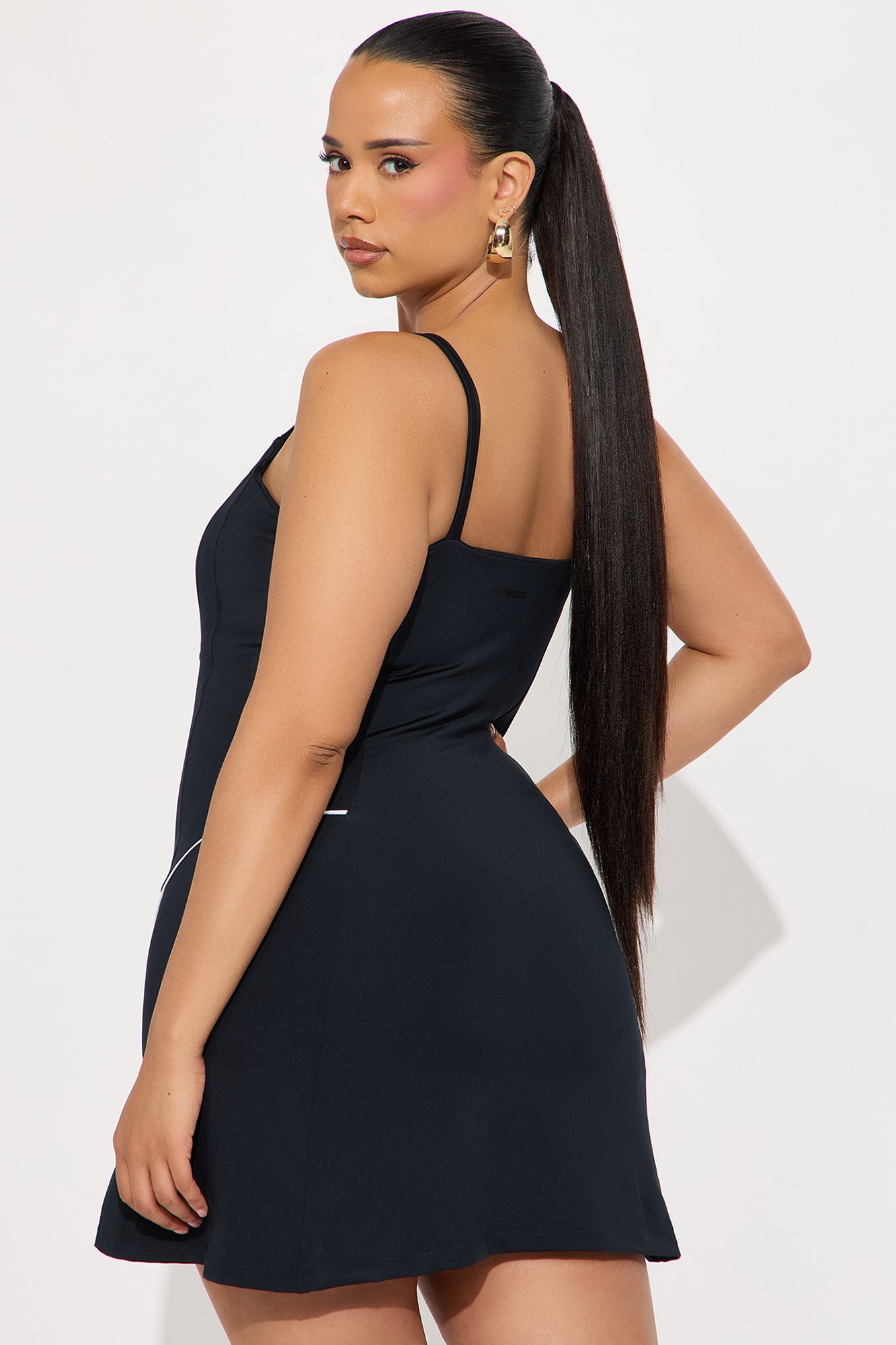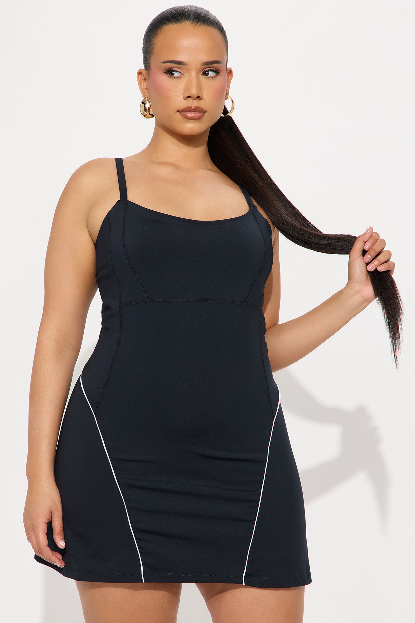 Available In Charcoal And Black. Active Dress Square Neck Sleeveless Elevate Contrast Piping High Impact Stretch Shell: 73% Polyester 27% Spandex Mesh: 82% Nylon 18% Spandex Imported |