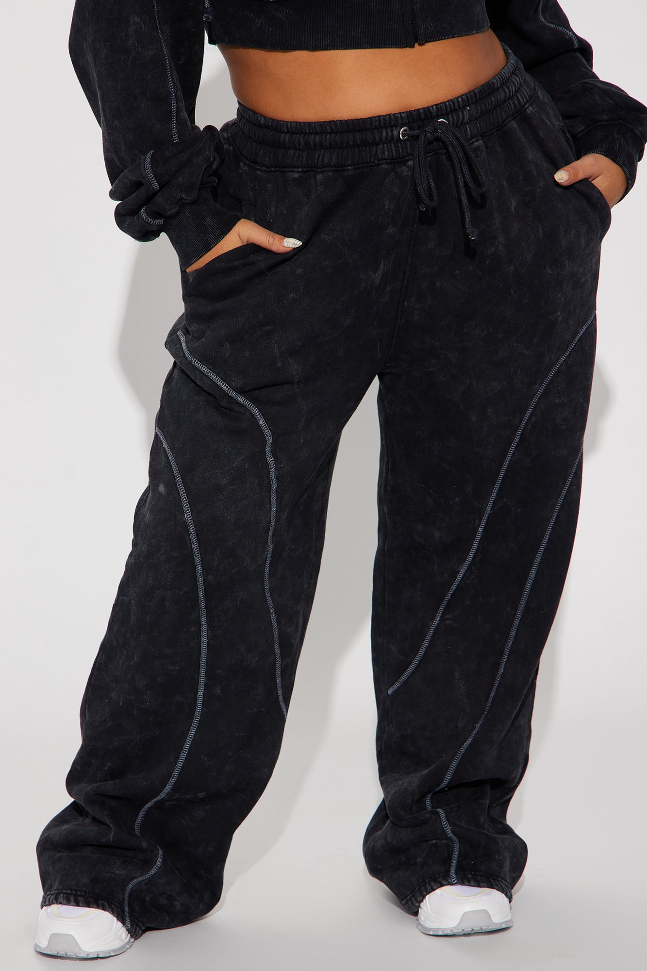 Available In Black. Wide Leg Pant High Waisted Elastic Waistband Drawstring Contrast Trim Pockets Fleece Pair With "Norah Washed Lounge Hoodie" Disclaimer: Due To The Specialized Wash. Each Garment Is Unique. 60% Cotton 40% Polyester Imported |