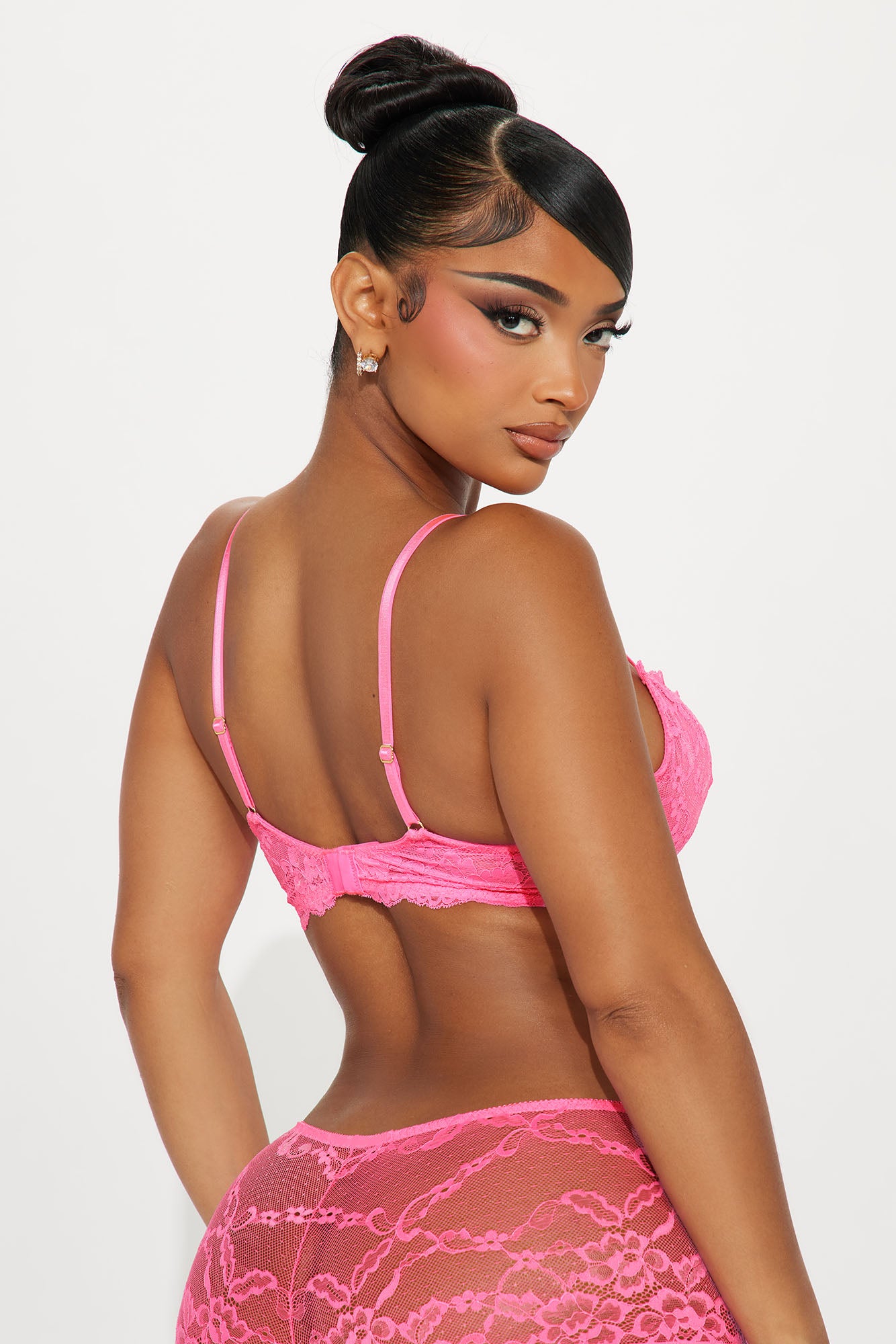 Available In Hot Pink. Unlined Bra Lace Underwire Adjustable Straps Pair with any style from our Nova Lace Bra and Panty Collection to complete the look! Final Sale 87% Nylon 13% Spandex Imported |