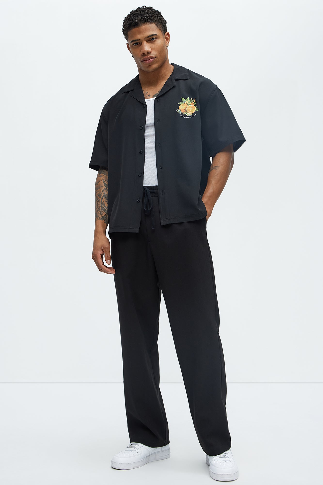 Available In Black. Cuban Collar Front Button Closure Short Sleeves Left Chest Graphic Hit Back Graphic Hit 92% Polyester 8% Spandex Disclaimer: Due To The Printing Process A Difference In Saturation May Occur. Each Garment Is Unique.?Print Placement Will Vary. Imported |