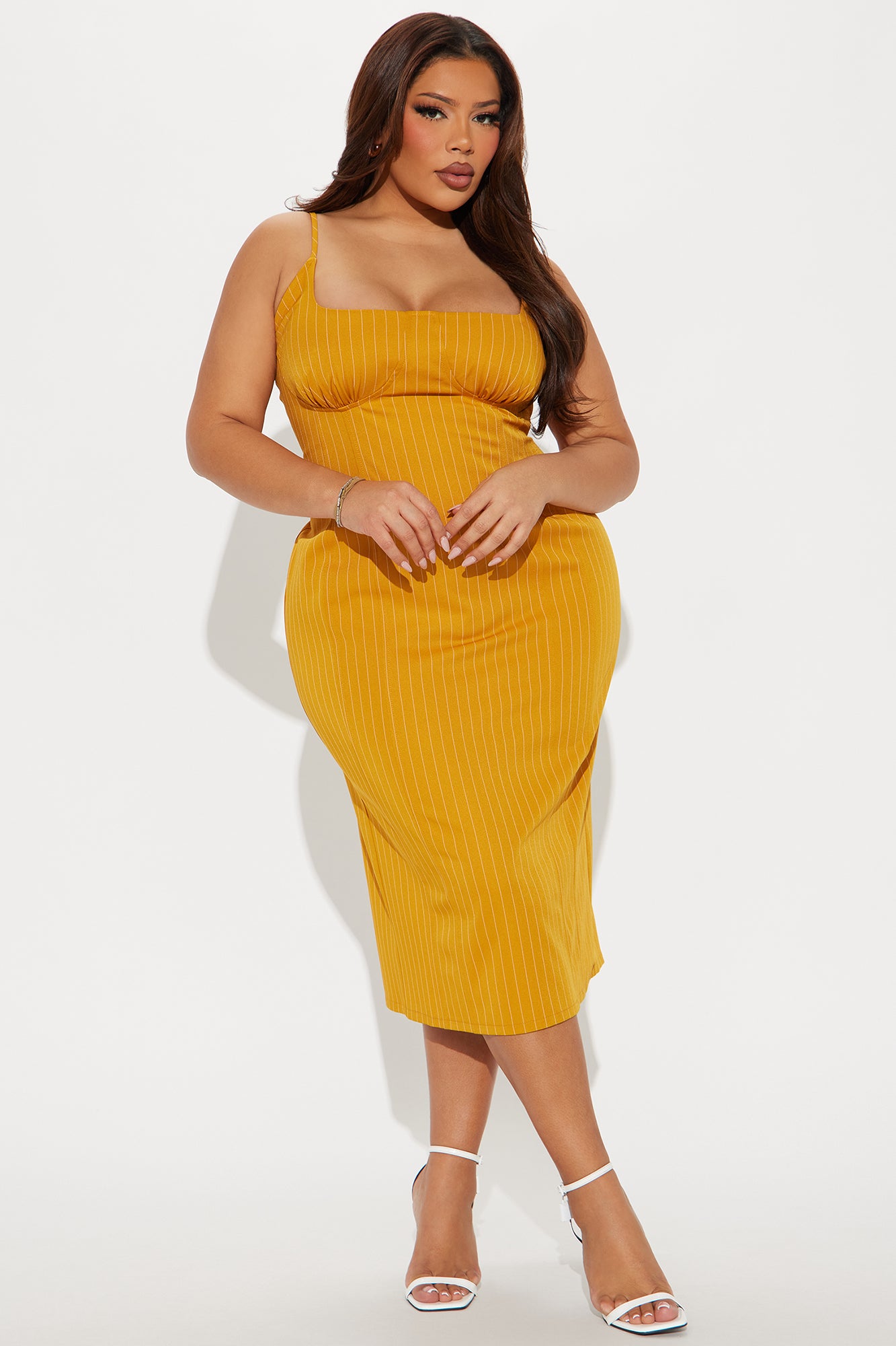 Win Me Over Pinstripe Midi Dress