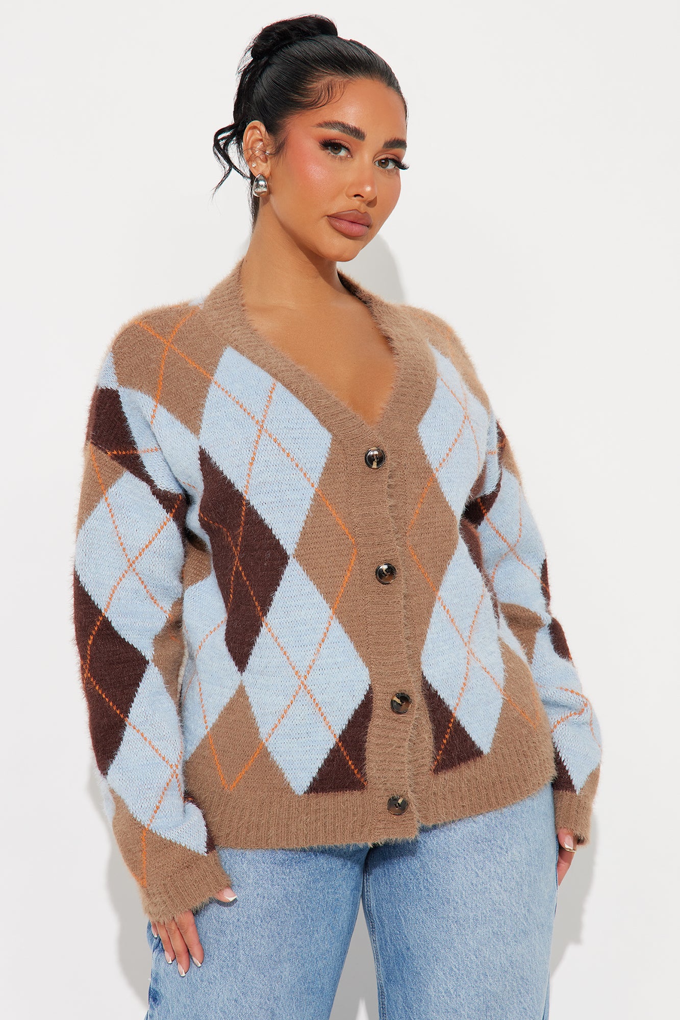 Available In Taupe/combo. Cardigan Sweater Argyle Print Long Sleeve Button Front Shell: 55% Polyamide 45% Acrylic Imported |